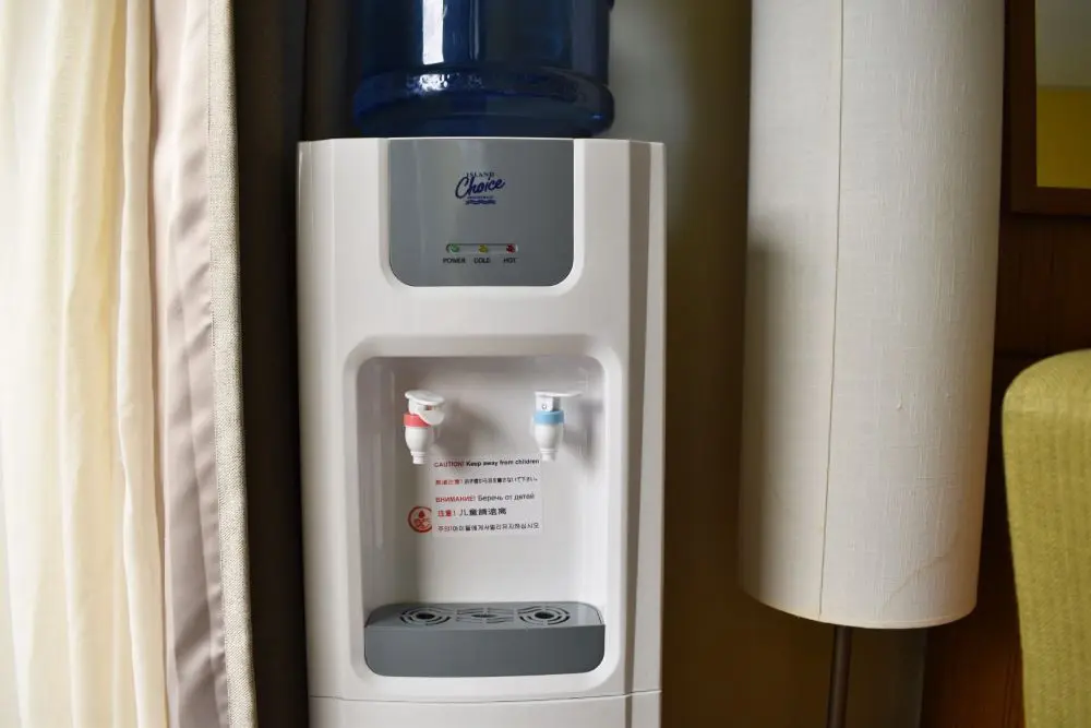 セルフコインランドリー(洗濯機と乾燥機)や電子レンジ、WiFiはもちろん、4泊以上の宿泊者(公式サイトから予約)は空港送迎サービスも無料で利用できるのも非常にうれしい点です。グアムでは通常、空港~ホテルの送迎には別途料金が発生するようになっています。一方、グアムリーフホテルは公式サイトから4泊以上の宿泊を予約した方に限り、往復約60ドル(1名利用時)の送迎代が無料になります。また、各部屋にはウォーターサーバーが設置されているため、毎日無料で水やお湯も利用可能になっています。