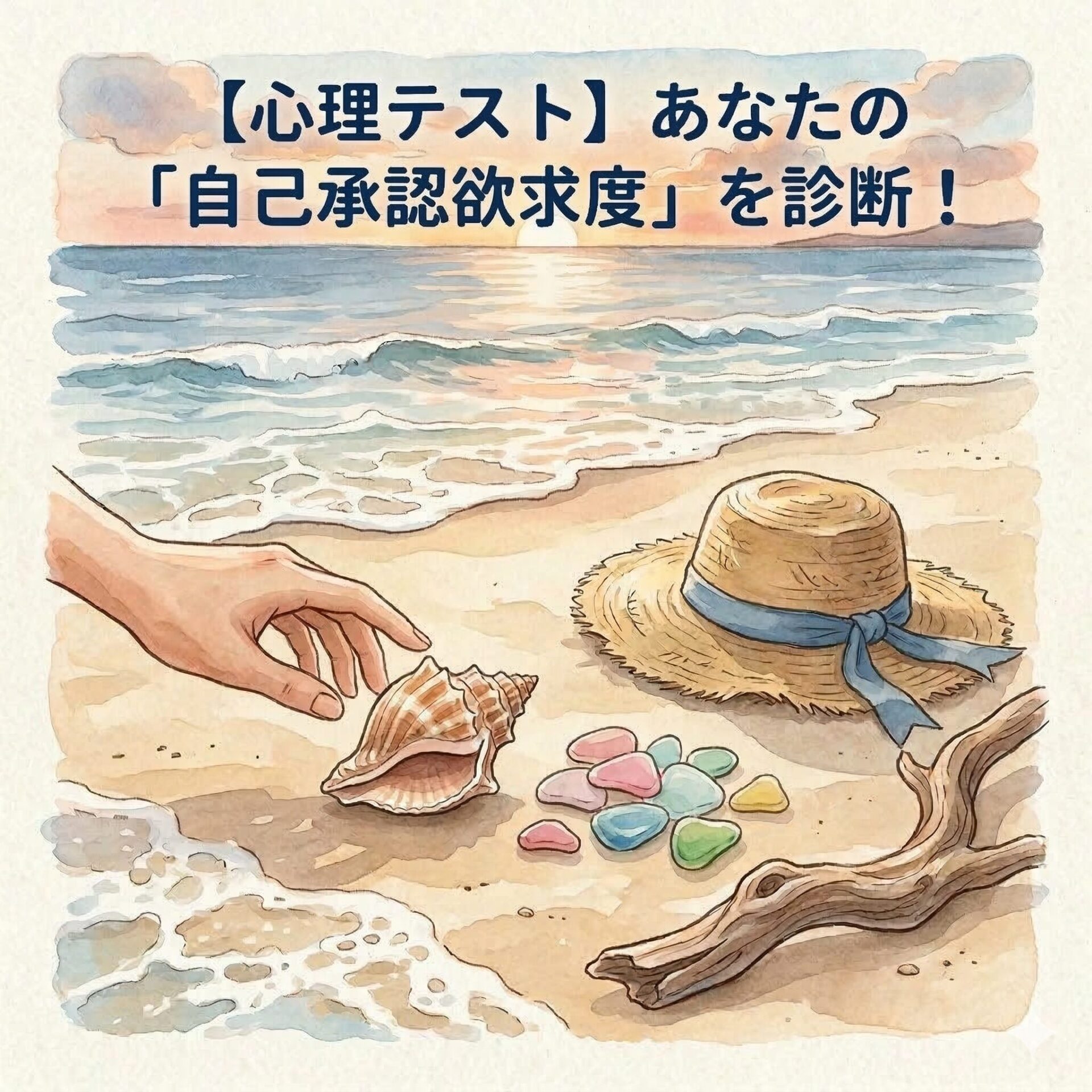 【10秒診断】海辺で何を拾う?波打ち際で見つけたものでわかる、あなたの「自己承認欲求度」!