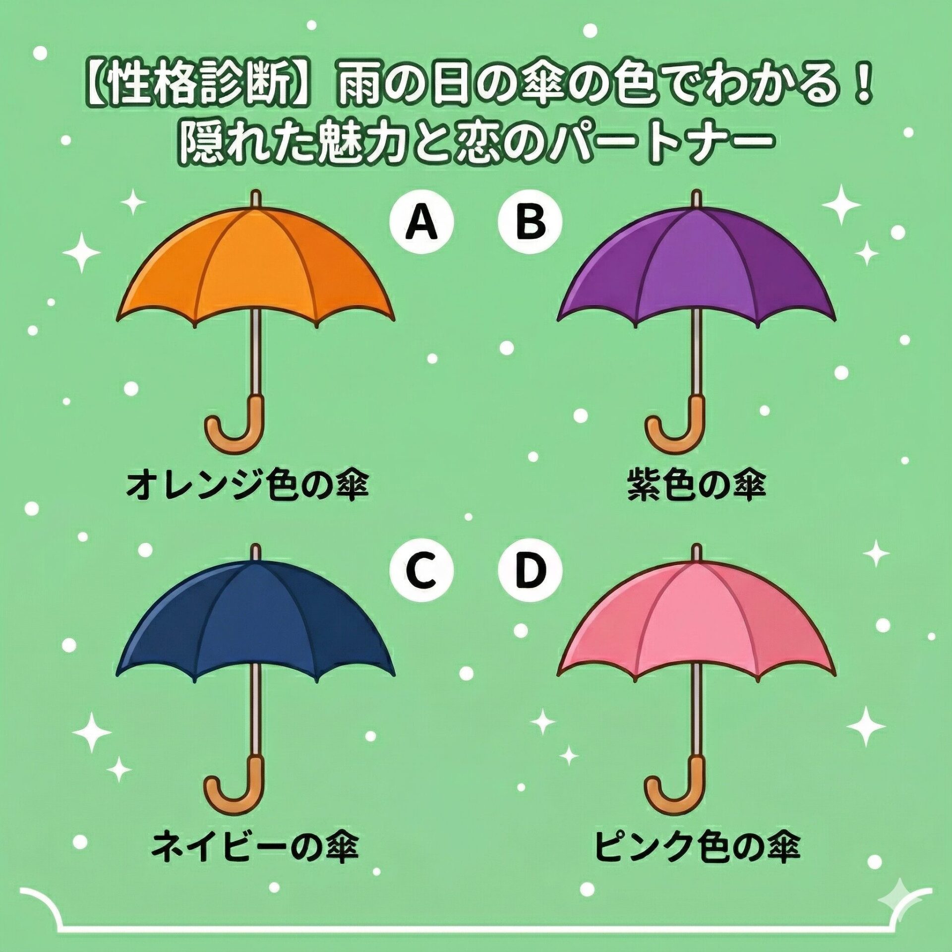 【恋愛診断】雨の日に差す傘の色でわかる!あなたの「隠れた魅力と理想の恋のパートナー」