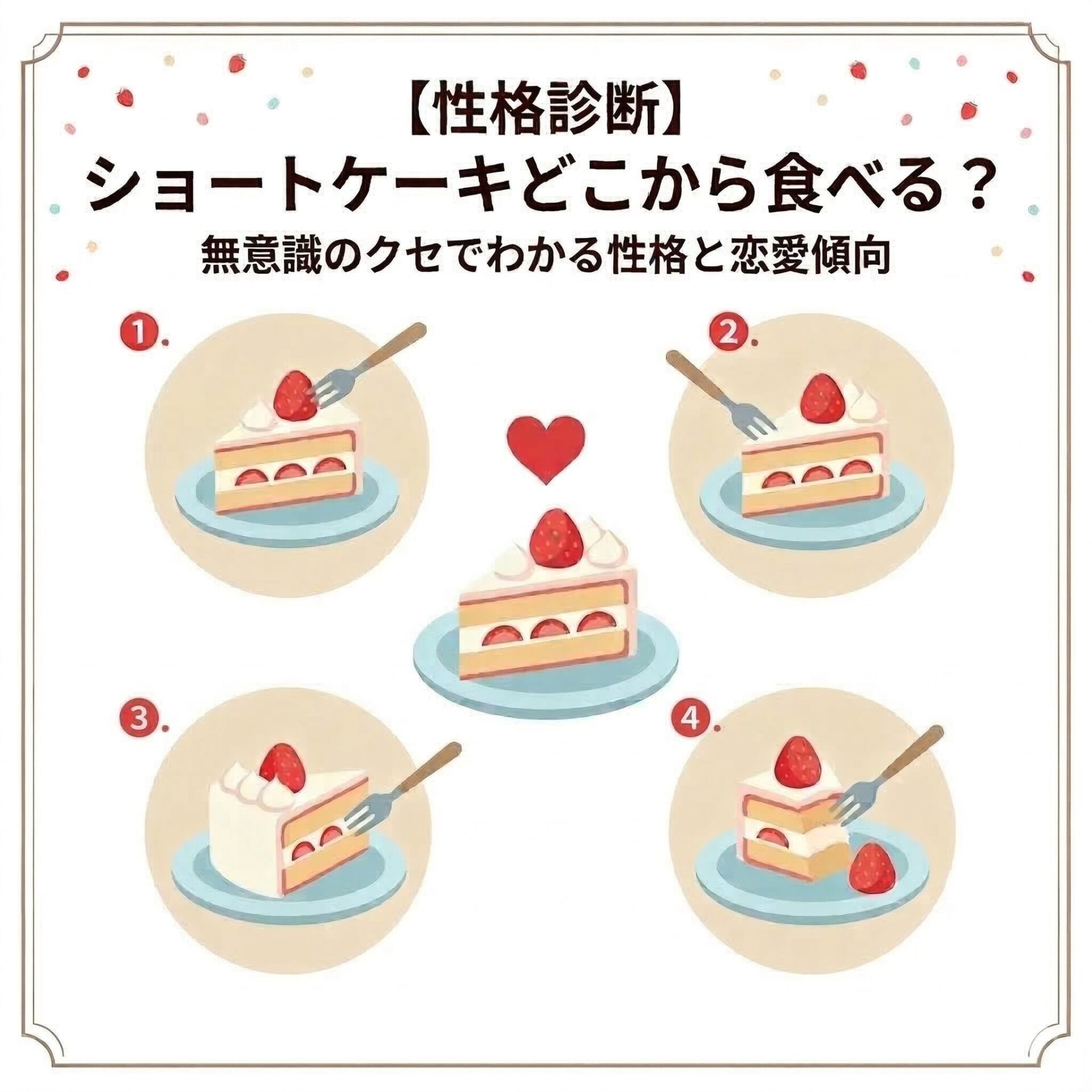 【性格診断】ショートケーキどこから食べる?無意識のクセでわかるあなたの「基本性格と恋愛傾向」