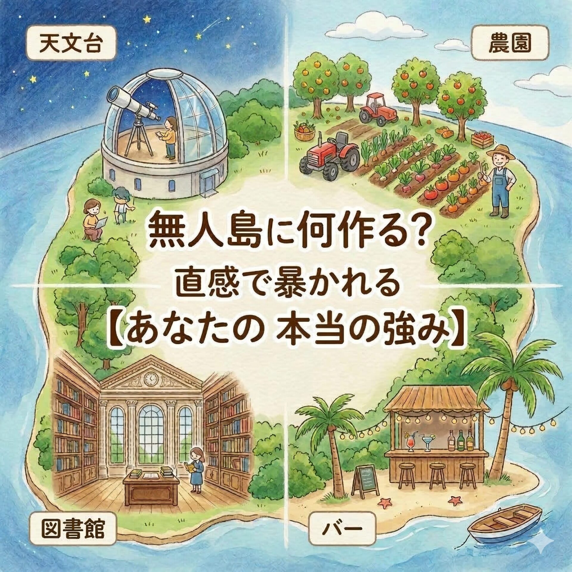【直感5秒診断】無人島のオーナーになったら何を作る?あなたの中に眠る「本当の強み」が丸わかり!