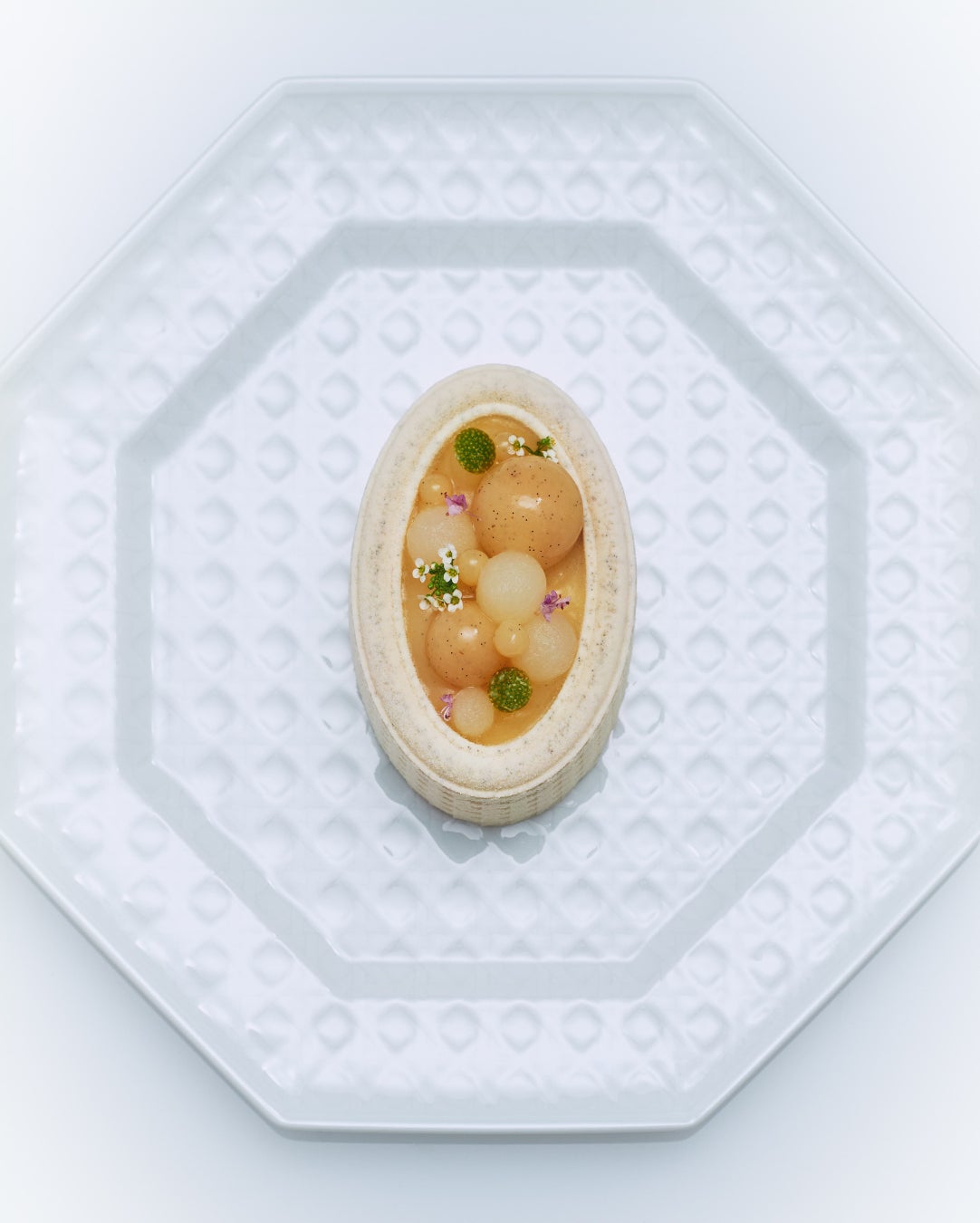 エクスクルーシブに提供されるセレクションはクリスチャン ディオールのレガシーからインスピレーションを得たもの。象徴的な「トワル ドゥ ジュイ」や「カナージュ」「千鳥格子」そして「ミッツァ(レオパード)」のモチーフや、「ローズ デ ヴァン」といった、美しくアイコニックな「30モンテーニュ」のシグネチャーコードをまといます。ムッシュ ディオールが「とても重要な装飾品」として大切にしていたクチュールボタンもまた職人技ともいえるクリエイションでメニューの中に息づいています。