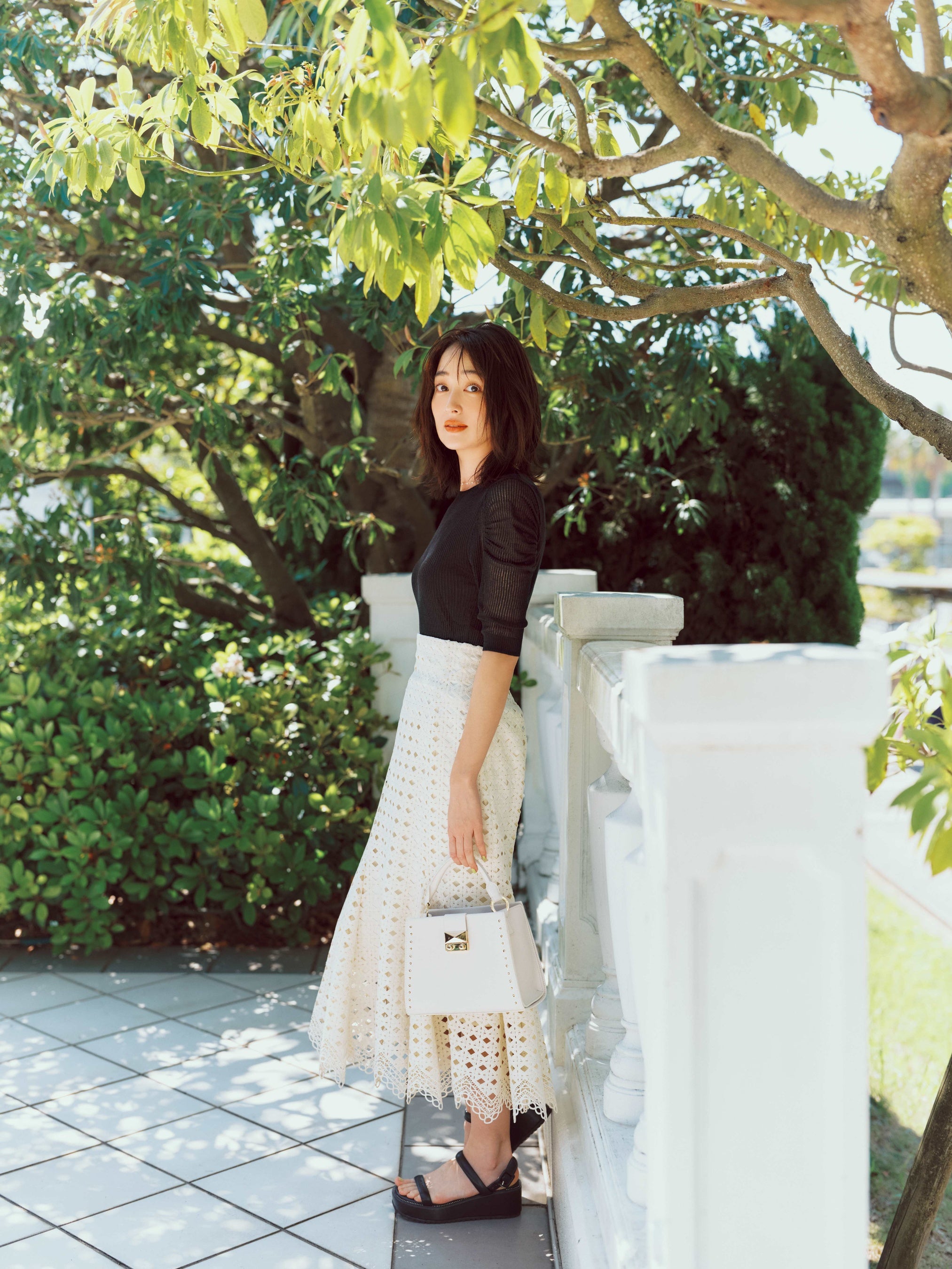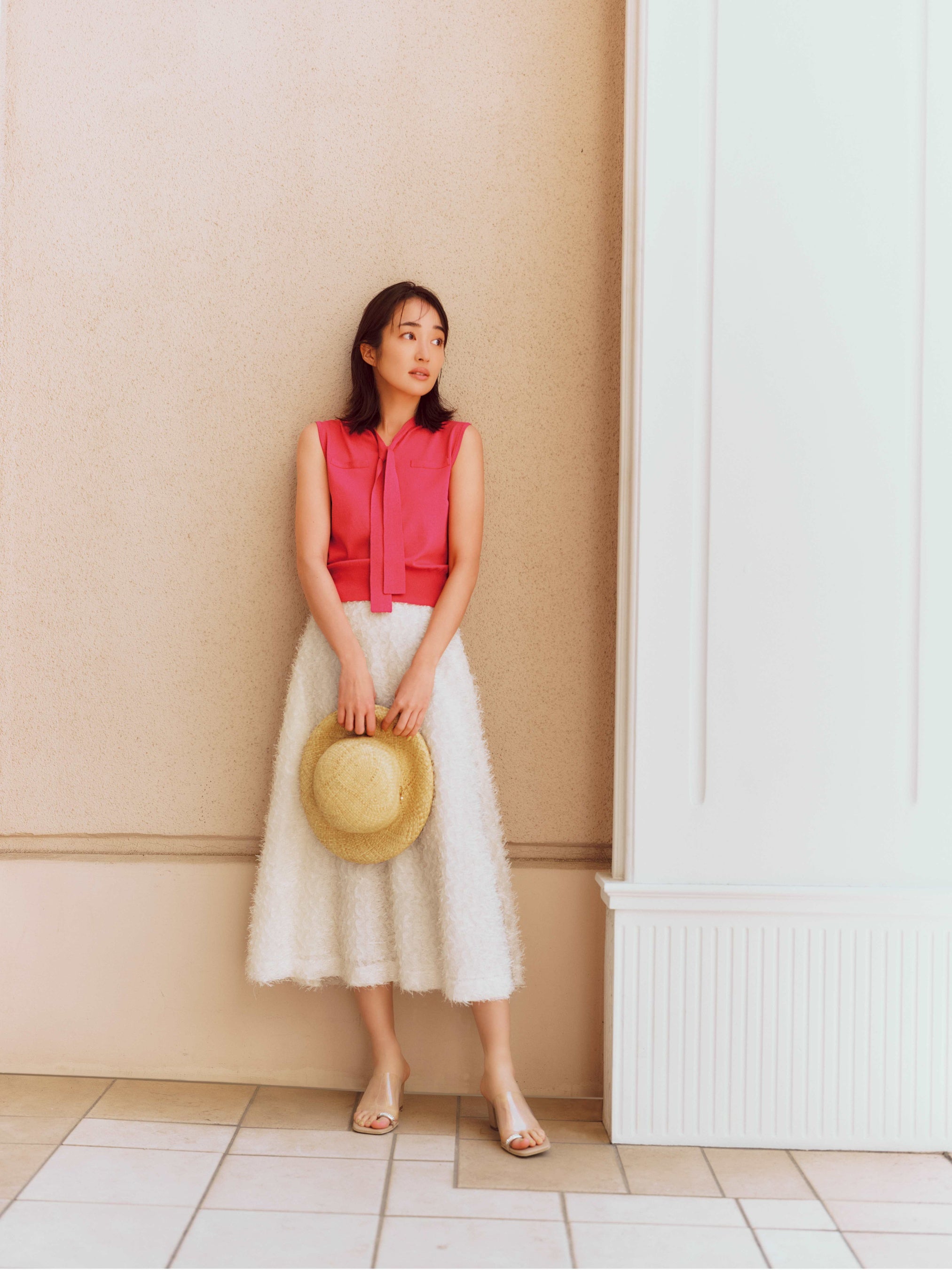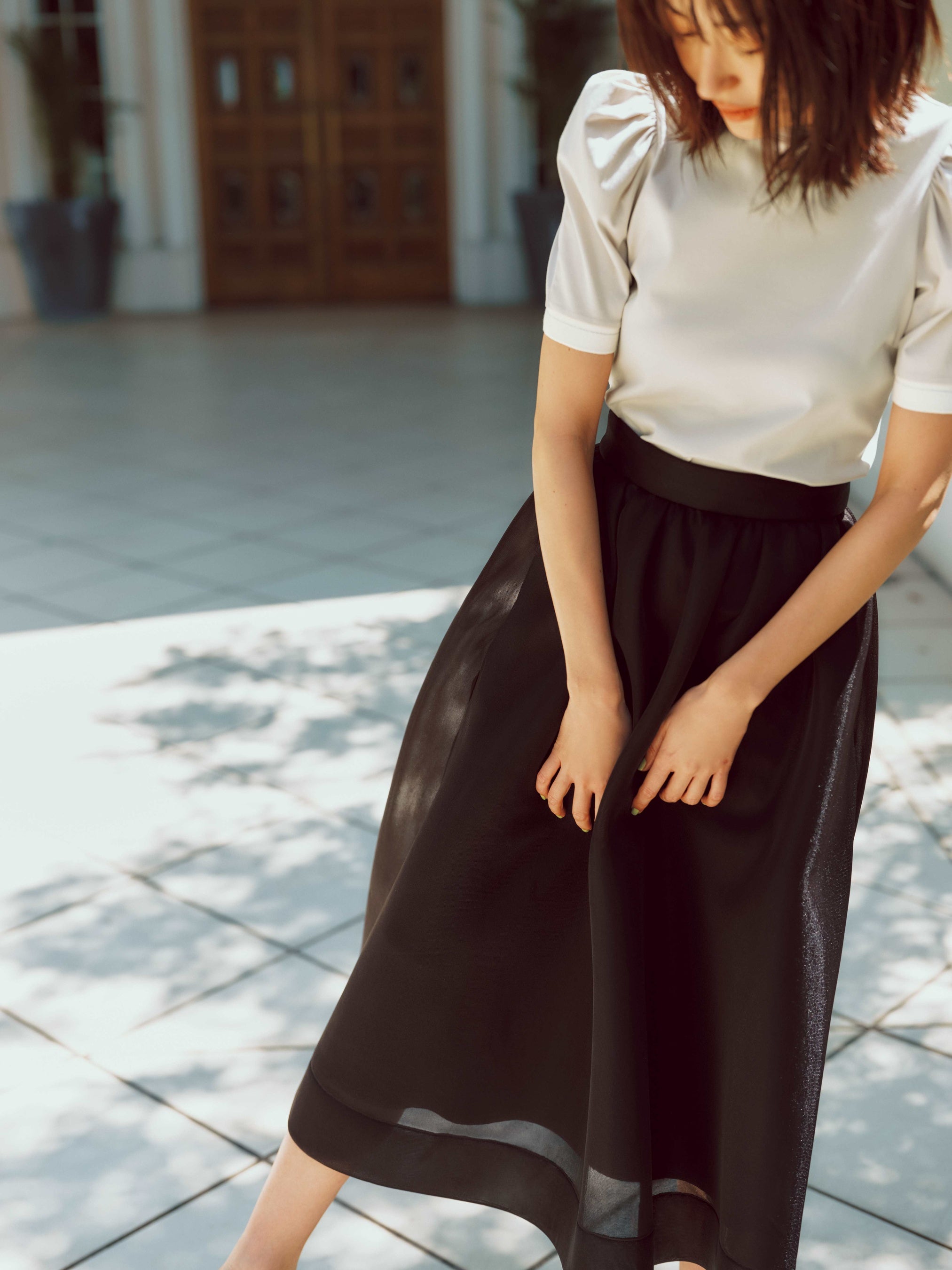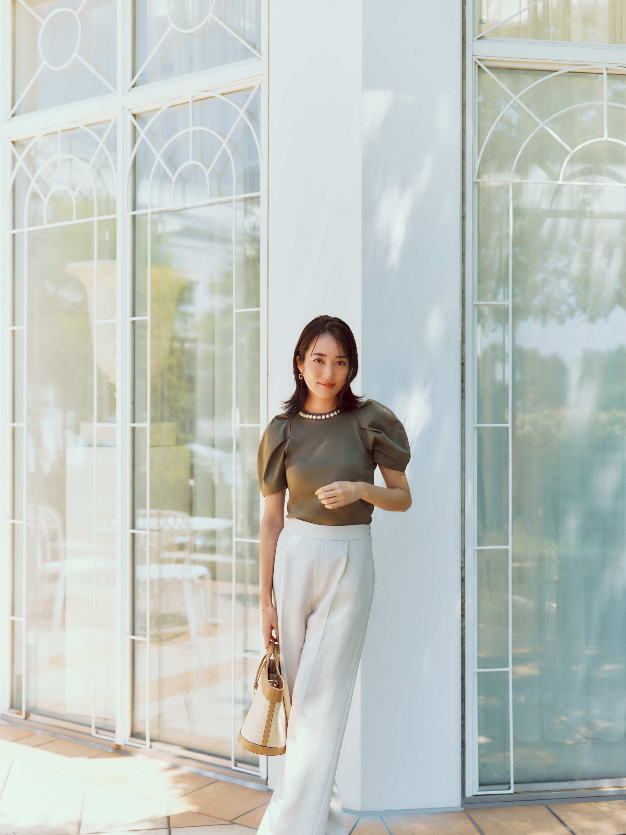 夏にぴったりな涼感あふれるトップスを、スカートとパンツそれぞれの着こなしで披露してくれました。