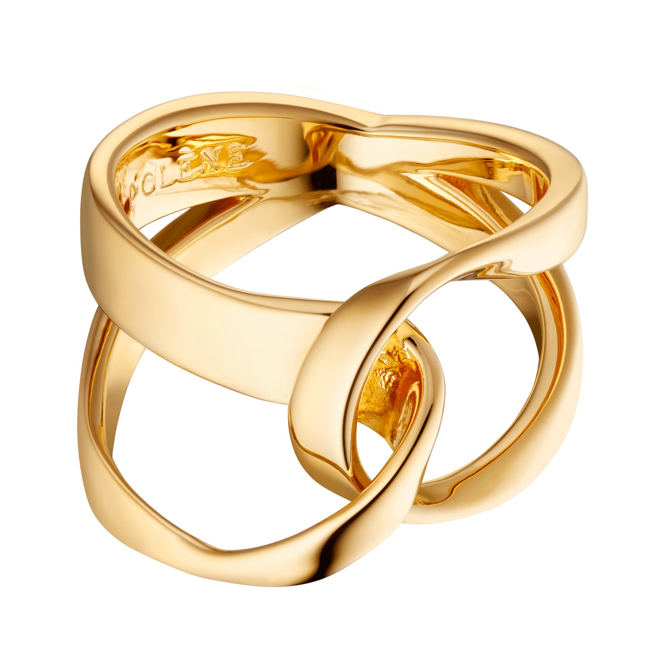 2つの有機的な環が交錯し、インフィニティの曲線が特徴的な、センシュアルなフォルムのリング。