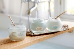 お風呂上がりに全身に塗りたくなるボディバターです。なめらかなテクスチャーは、すっと肌になじみ、しっかりとうるおいを与えてくれるリッチでクリーミーな感覚!