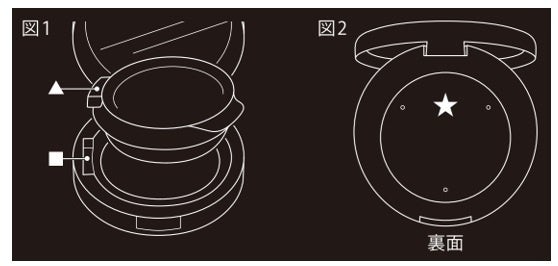 ●新しいレフィルに詰め替える際は、ケースのふたを開けたまま裏返し、鏡側を上に向けた状態でレフィル裏面★部分を強く押して取り外してください。(図2)