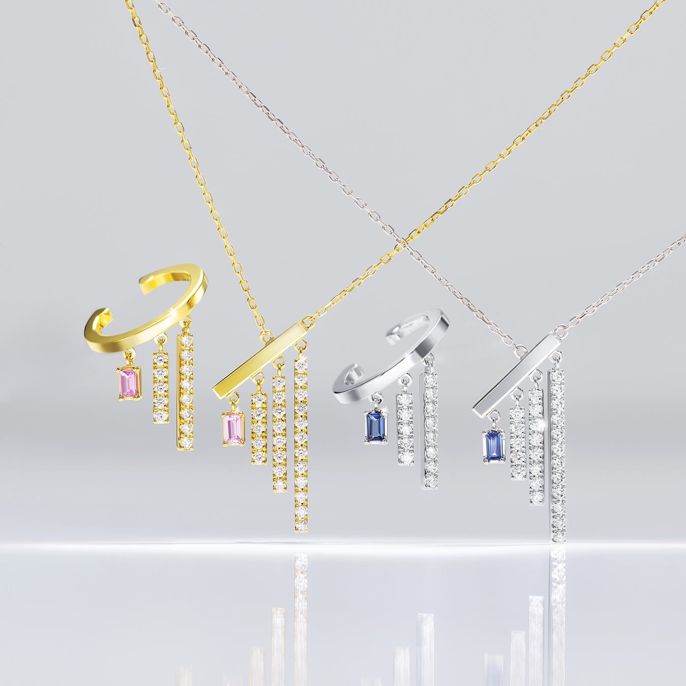 期間中、「シャンデリア バゲット」からピンクサファイアとブルーサファイアのバゲットカットがアクセントを加える、ザ・ステージ限定ジュエリーが登場します。
