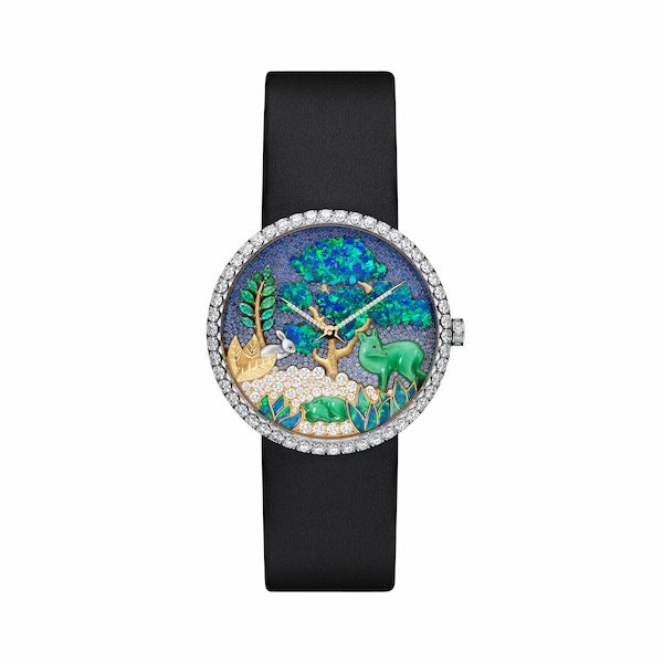 詩情豊かなストーリーが繰り広げられる文字盤に、精緻を極めた幻想的な美とディオールが心から愛した壮麗な植物の世界が宿ります。