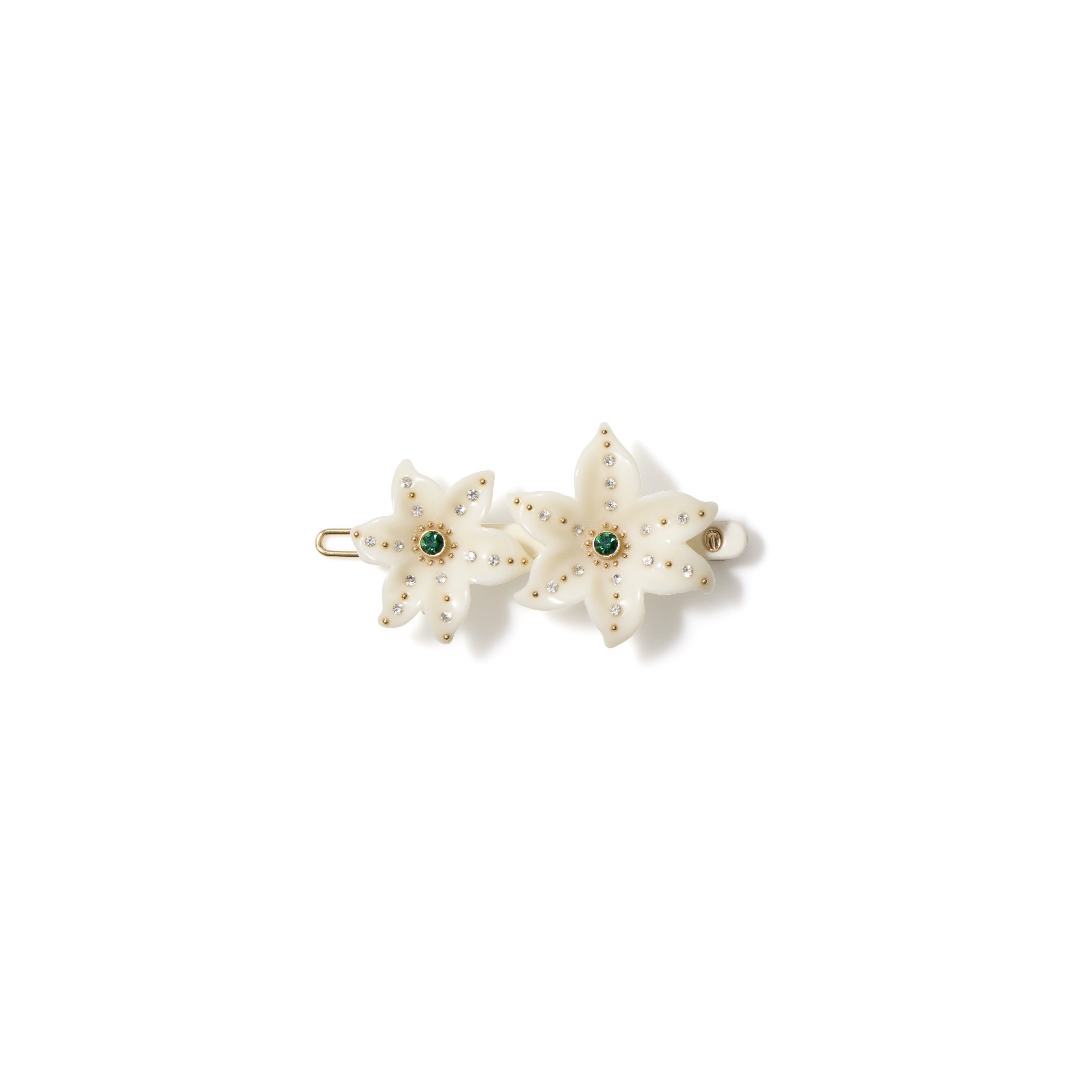 野の花々を髪にさして遊んだ幼い頃の遊び心を思い出させてくれるようなバレッタ。