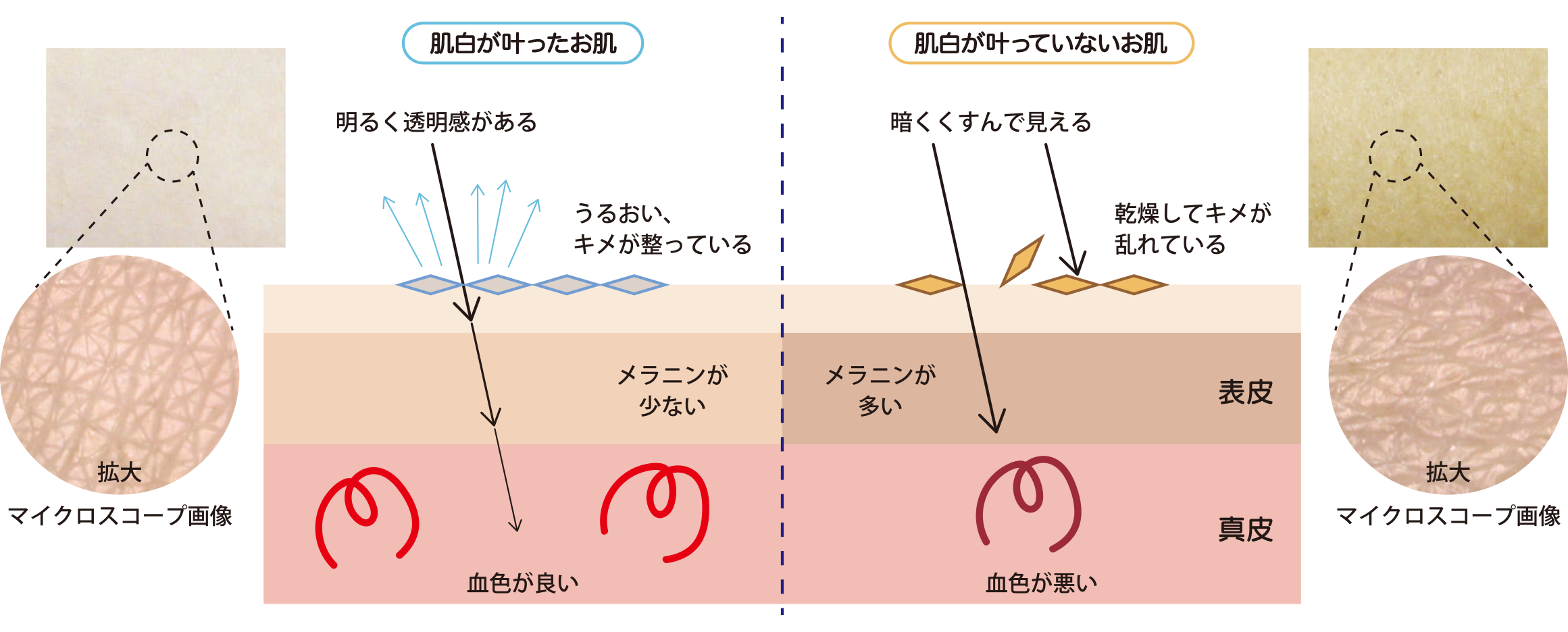 ※2 お肌の乾燥などによりキメが乱れ、肌色が暗く見える状態