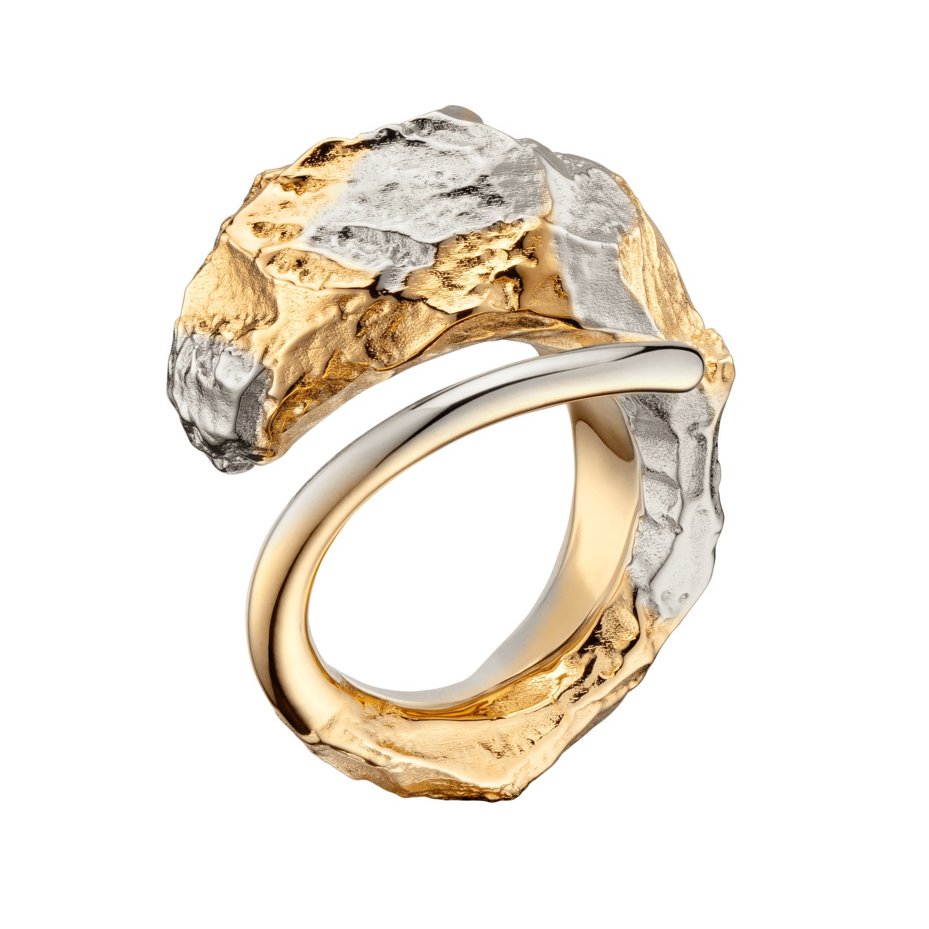 カプセルコレクションとなる3つのジュエリーは、鉱物からのインスピレーションはそのままに、「Eroz(エロズ)」コレクションのイメージの土台である岩石を思わせるデザインに様々な金属仕上げを探求しています。ピュスピアス、クレオールフープ、そしてリングからなる「Edition デュオ」のジュエリーは、24Kゴールドにパラジウムを混ぜ合わせることで、まるで今も溶け合っているかのような二重の輝きを放ちます。