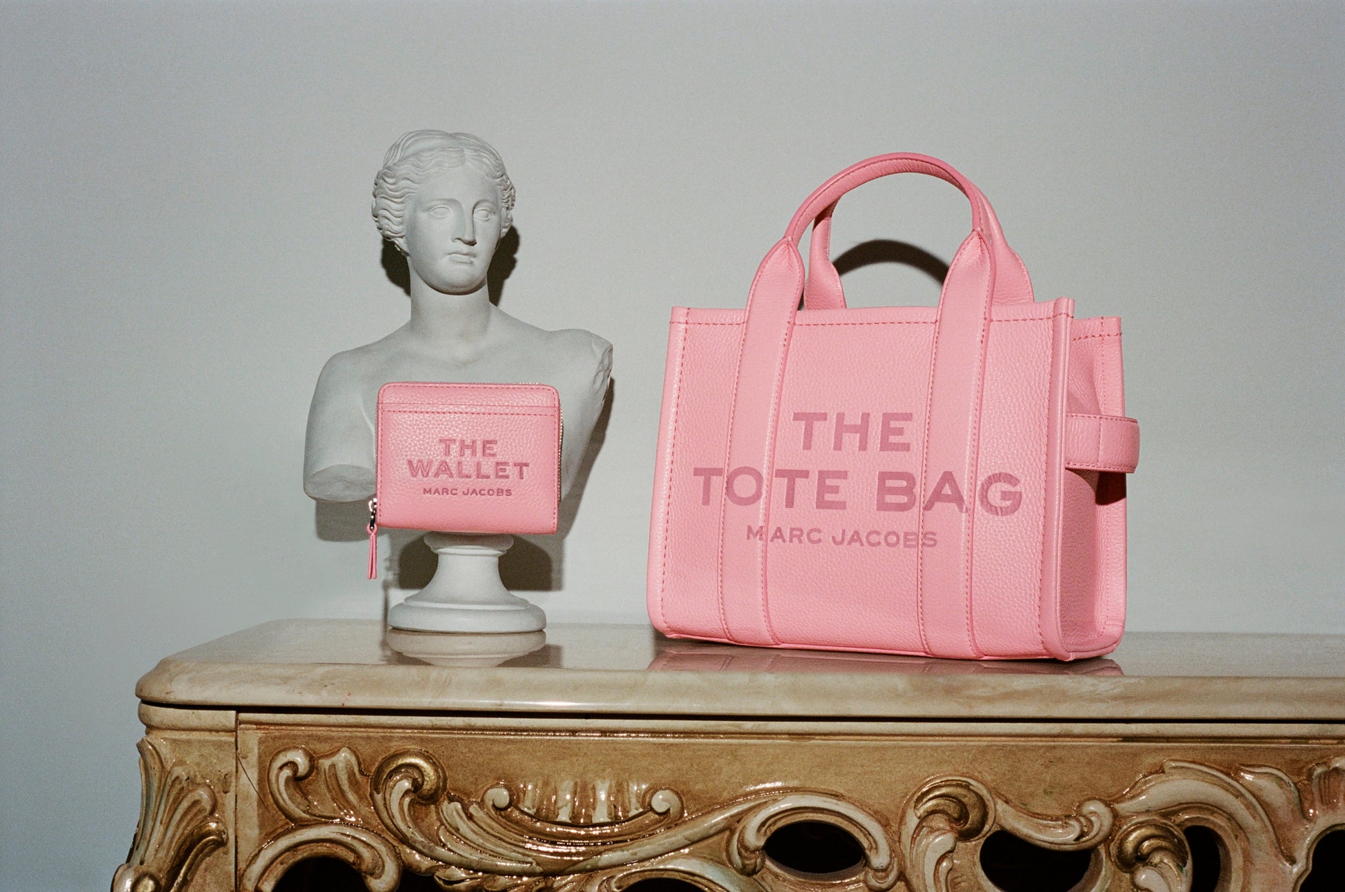 MARC JACOBSのアイコントート「ザ レザー トート バッグ(THE LEATHER TOTE BAG)」と同じ、ナチュラルなシボ感が美しいレザーを採用した「THE」のシリーズから展開する、「ザ レザー コンパクト ウォレット ミニ」に新色のキャメルとリボンピンクが仲間入り。見た目は小ぶりながら、紙幣スリーブとカードスロット、スリップポケット、外側にコインポケットと収納力を持ち合わせています。