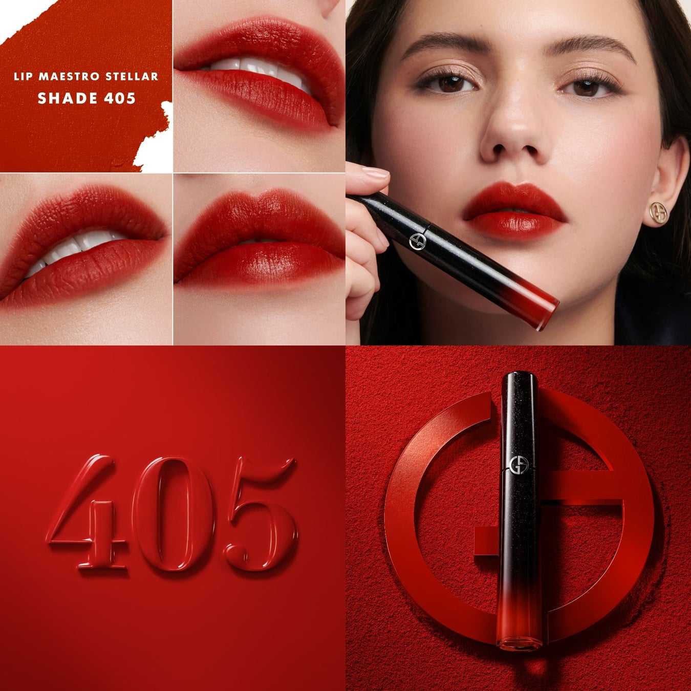 #405 Iは、「リップ マエストロ」のアイコニックなカラーであるリッチなオレンジレッドの#405にインスパイアされた本コレクションのための新色です。オリジナルのシェードよりさらに深い発色で、スタイルが宿るリッチな仕上がりに導きます。