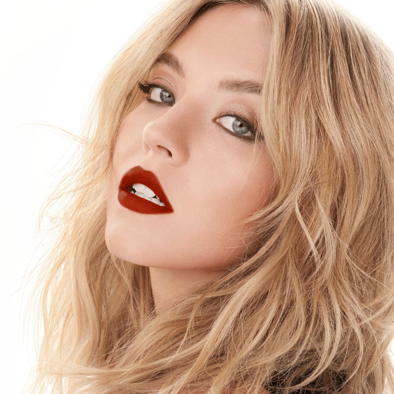 肌のトーンを美しく魅せる、深みのあるオレンジレッド。