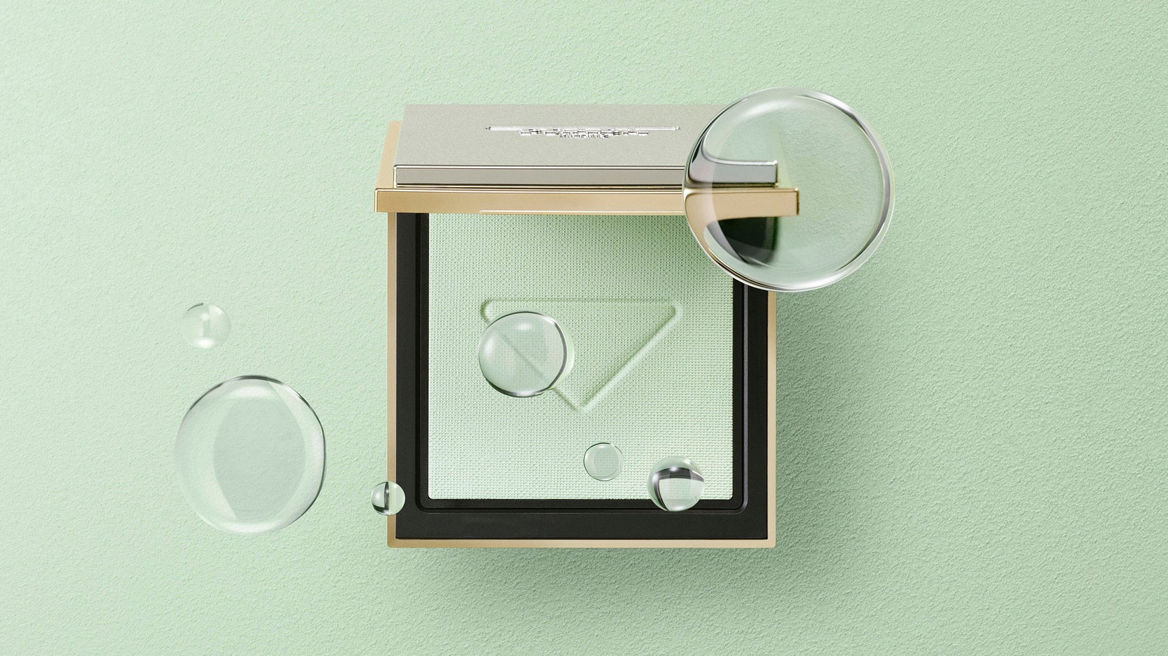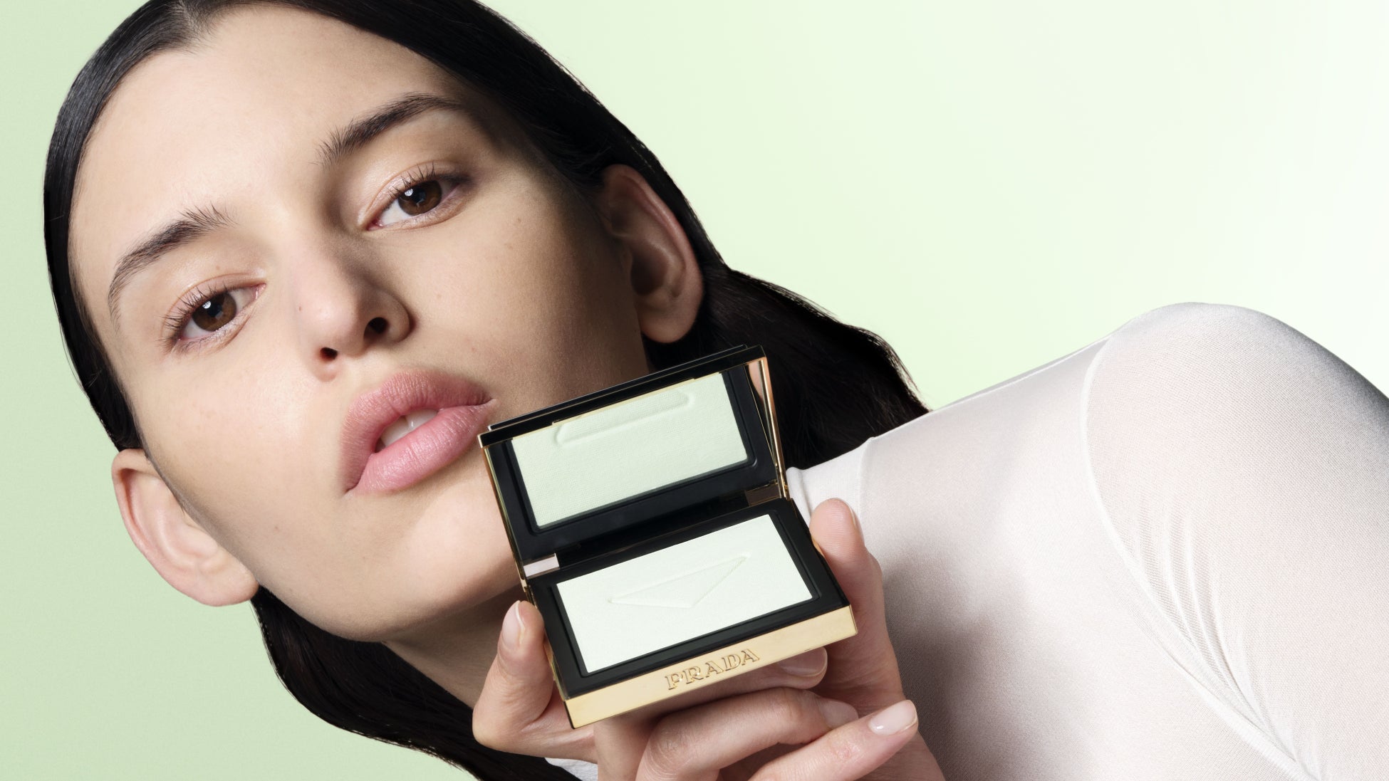 プラダ グリーンのパウダーが透明のヴェールのように肌を包み込む
