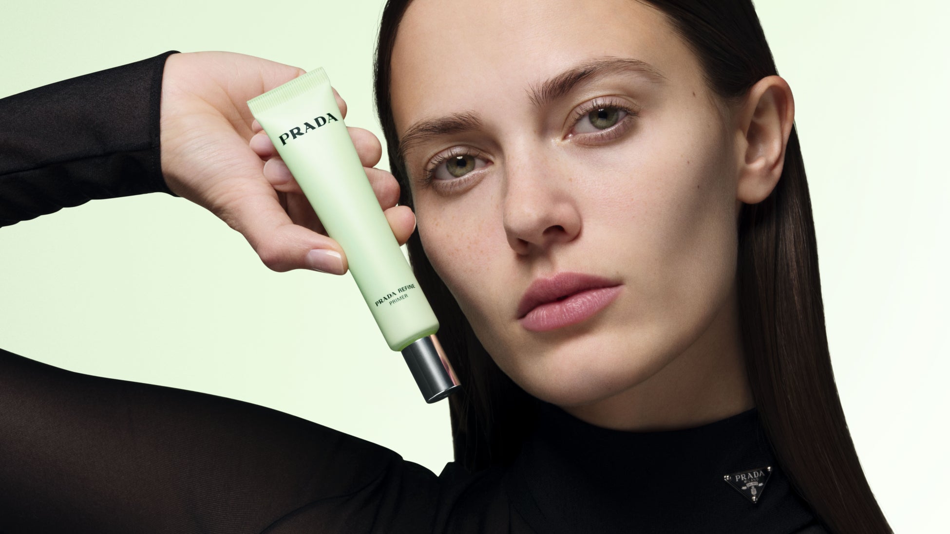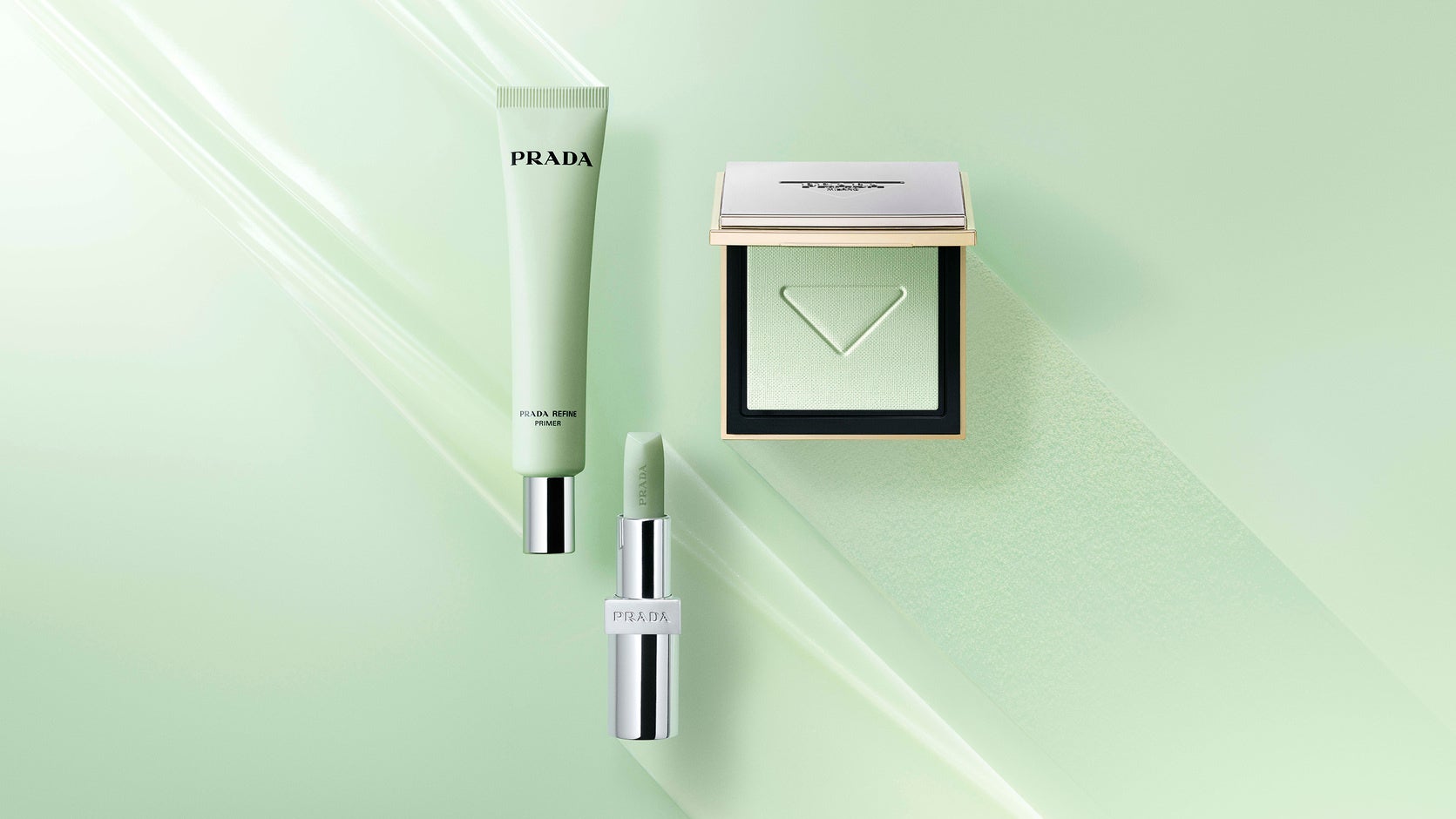 プラダ グリーンの色合いが目を引くデザインが特徴のプライマー、セッティング パウダー、プラダ バームの3アイテムは、幅広いスキンタイプ・カラーの肌を美しく導き、さらりとした質感に仕上げます。