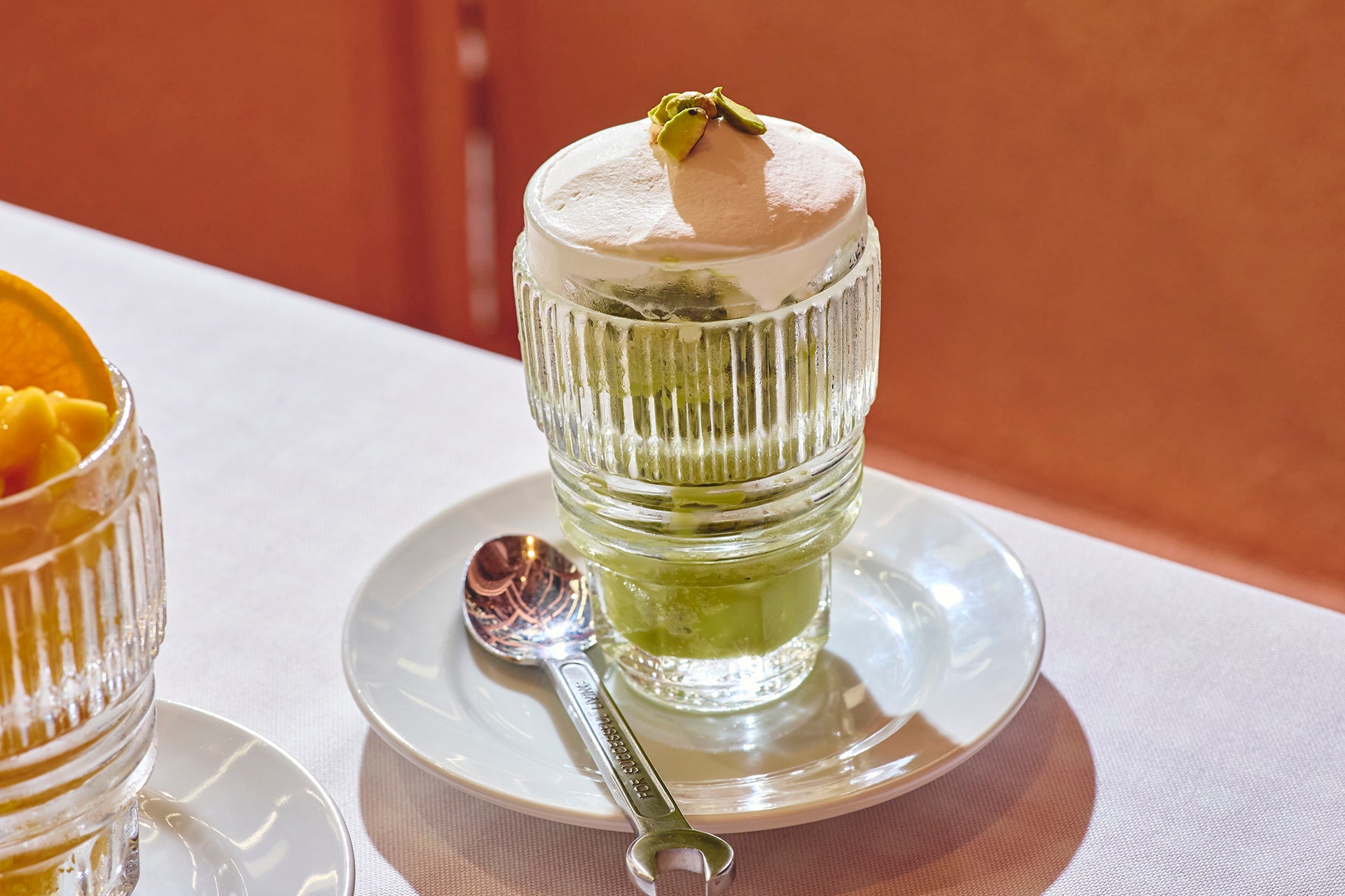 本場イタリアではエスプレッソのグラニータと並び人気のメニュー。上質なピスタチオペーストを使用し、バニラアイスと生クリームをトッピング。濃厚さのあとにすっきりとした味わいが広がります。