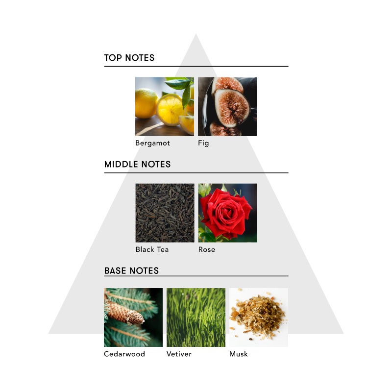 ベルガモット、フィグ、ブラックティー、ローズ、シダーウッド、ベチバー、ムスク