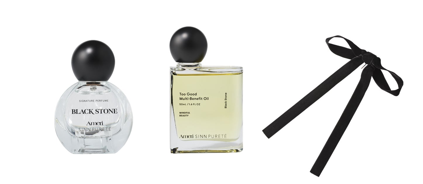 纏う人すべての個性を解き放ち、より際立たせるシグネチャーパフューム40mlとヘア&ボディに使えるマルチオイルのセット。BLACK STONEの香りが、ファッション性とトレンド感をより一層際立てます。コラボ限定のヘアアクセサリープレゼント付き。