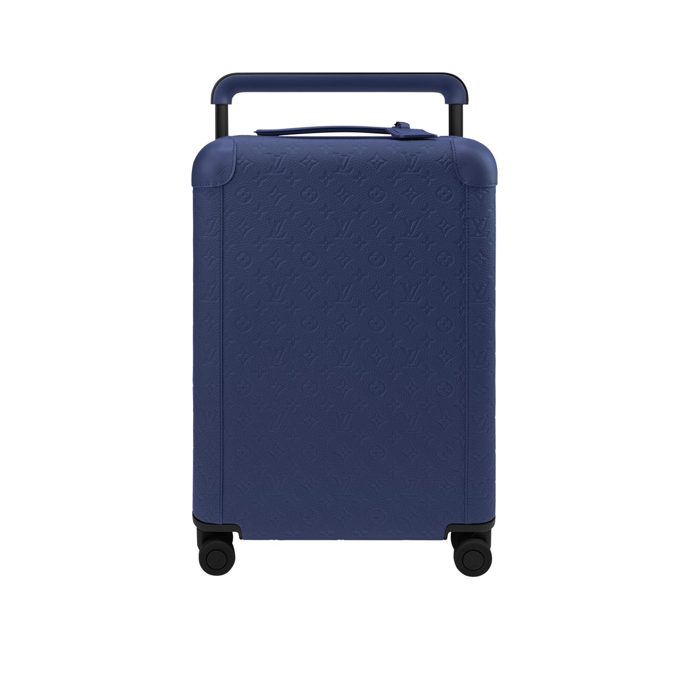 モノグラムをエンボス加工したグレイン(しぼ)のあるトリヨンレザーで仕上げた「ホライゾン 55」。サファイアカラーでスタイリッシュにアップデートしました。色合いを引き立てるブラックのメタルパーツが、さりげなくエレガントな雰囲気を演出します。機内持ち込みが可能(航空会社や使用する機材によって条件は異なります)なサイズでありながら、キャリーハンドルを外付けにすることで容量のある内装を実現しました。