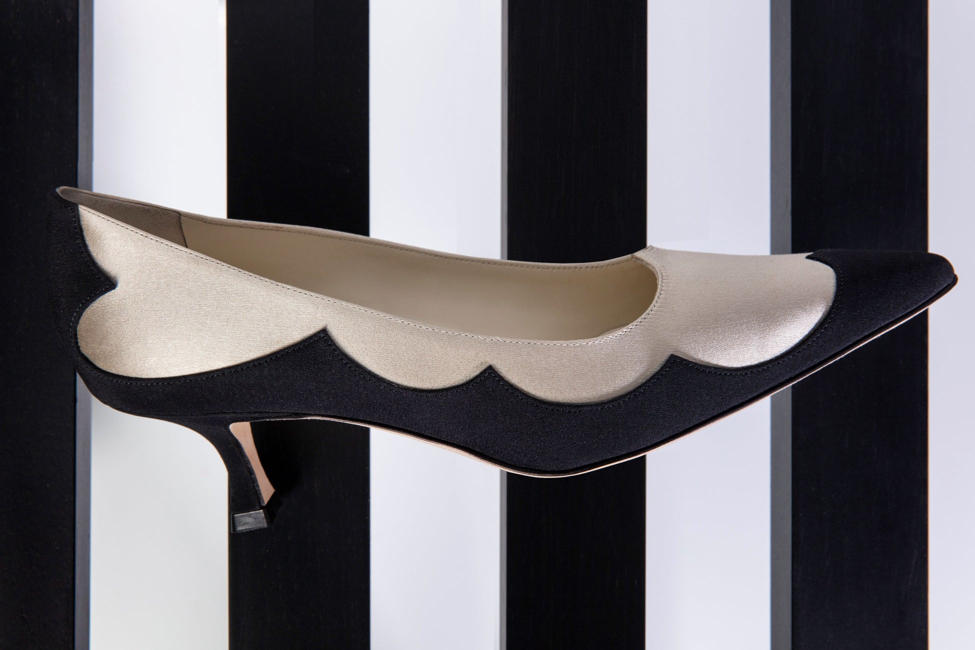 コレクションの核である精巧なクラフトマンシップは、さまざまな特徴的なデザインで強調されています。豊かなハンドプリーツのひだは、ブラニクの母国スペインの伝統的なフラメンコダンサーを思い起こさせ、ミッドセンチュリーのミニマルな家具のラインを模した曲線的なメッシュの切り込み、対照的なランニングステッチとピンクの縁取りが、職人技をさらに際立たせます。
