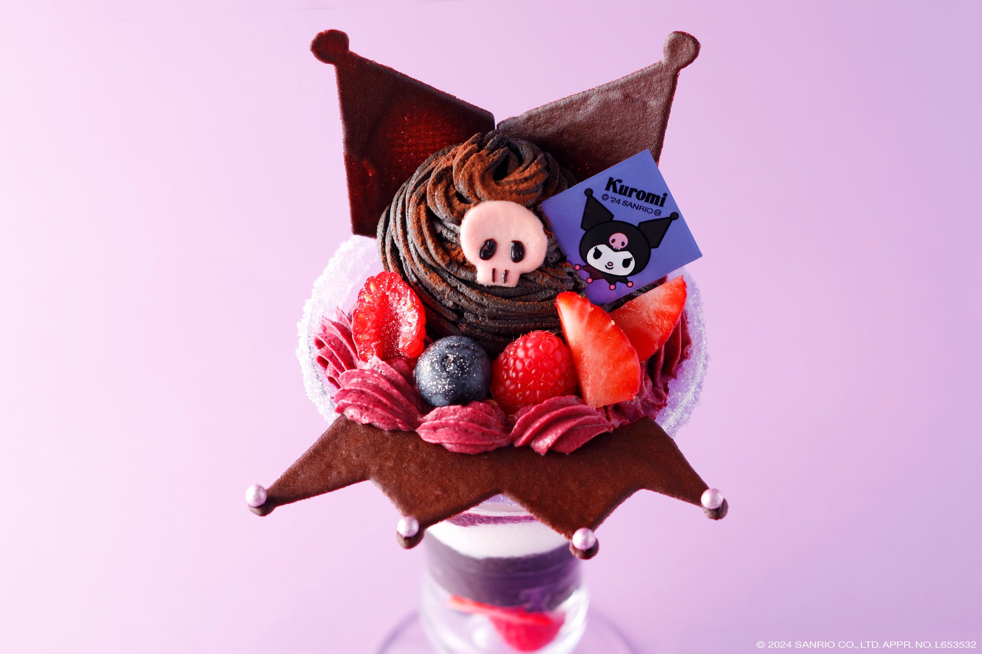 サンリオキャラクターズとコラボした『ラング ド シャ ブラン』の発売を記念し、10月31日に誕生日を迎えるクロミをテーマとした『クロミ スペシャルパフェ』を数量限定で展開いたします。クロミのチャームポイントである黒いずきんとピンクのどくろをモチーフとし、ハロウィンにインスピレーションを受けたパフェです。紫のフリュイルージュのクリームや竹炭を混ぜ込んだ黒のチョコレートムースを使用し、3種のベリーをあしらいました。