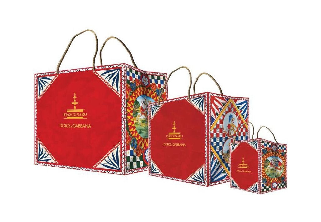 ドルチェ&ガッバーナxフィアスコナーロのオリジナルショッピングバッグとリーフレットが付属します。ドルチェ&ガッバーナの世界観あふれる仕上がりになっており、クリスマスシーズンとは切っても切り離せないパネットーネはギフトにも最適です。