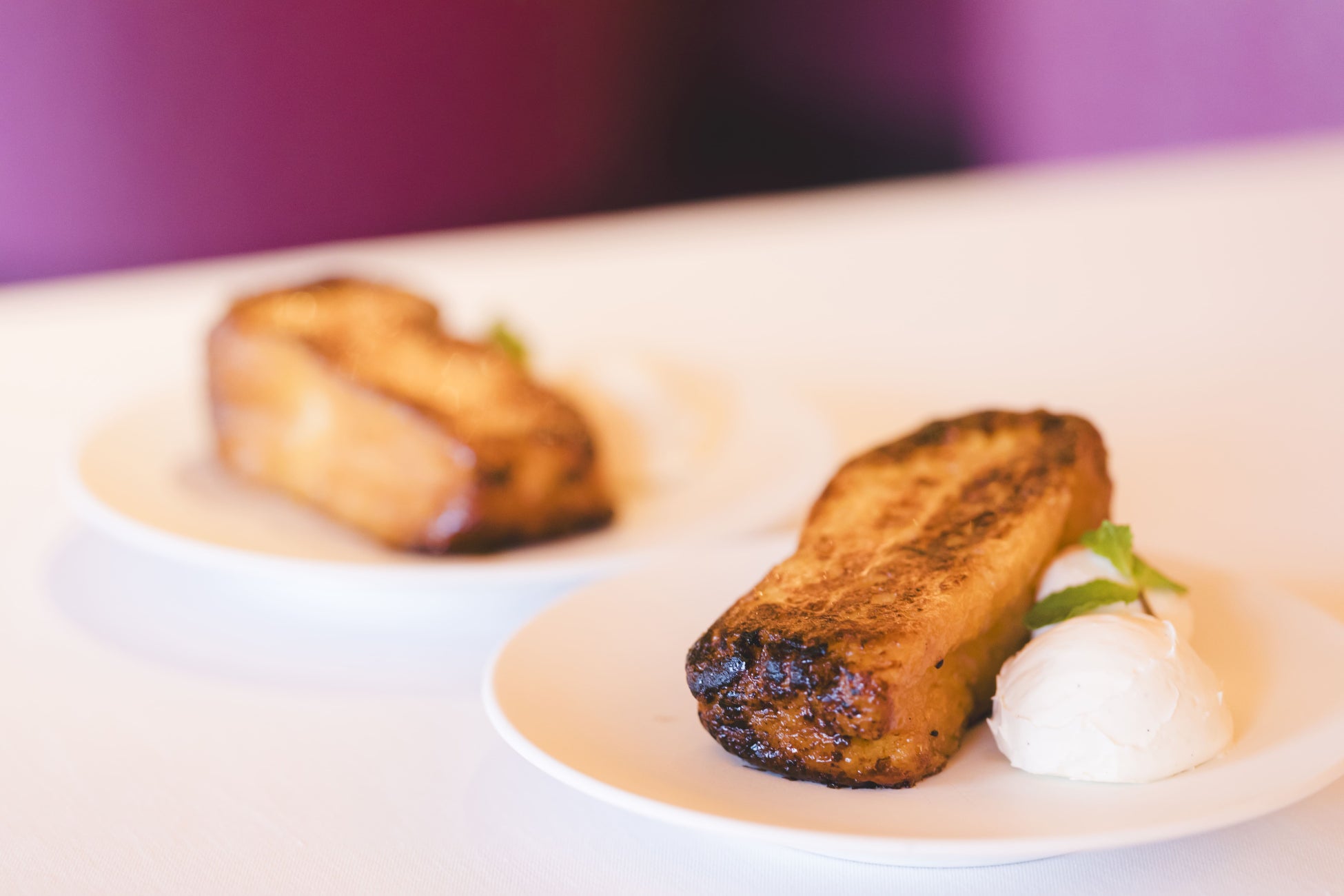 今年のフェスティブアフタヌーンティーはオーガニックコスメブランド「ジュリーク」とコラボした内容でお届けいたします。気分躍るクリスマスをテーマにしながら、ローズやラベンダーなどジュリークの代表的な植物の色合いと、ボタニカルな雰囲気からインスピレーションを受けたスイーツとセイボリーがスタンドに勢ぞろいします。クリスマス期間に食べられる伝統菓子シュトーレンはクランベリーが入った可愛らしいピンク色で登場します。また、今回はパフェの代わりにクリームが添えられた温かいフレンチトーストをご賞味いただけます。