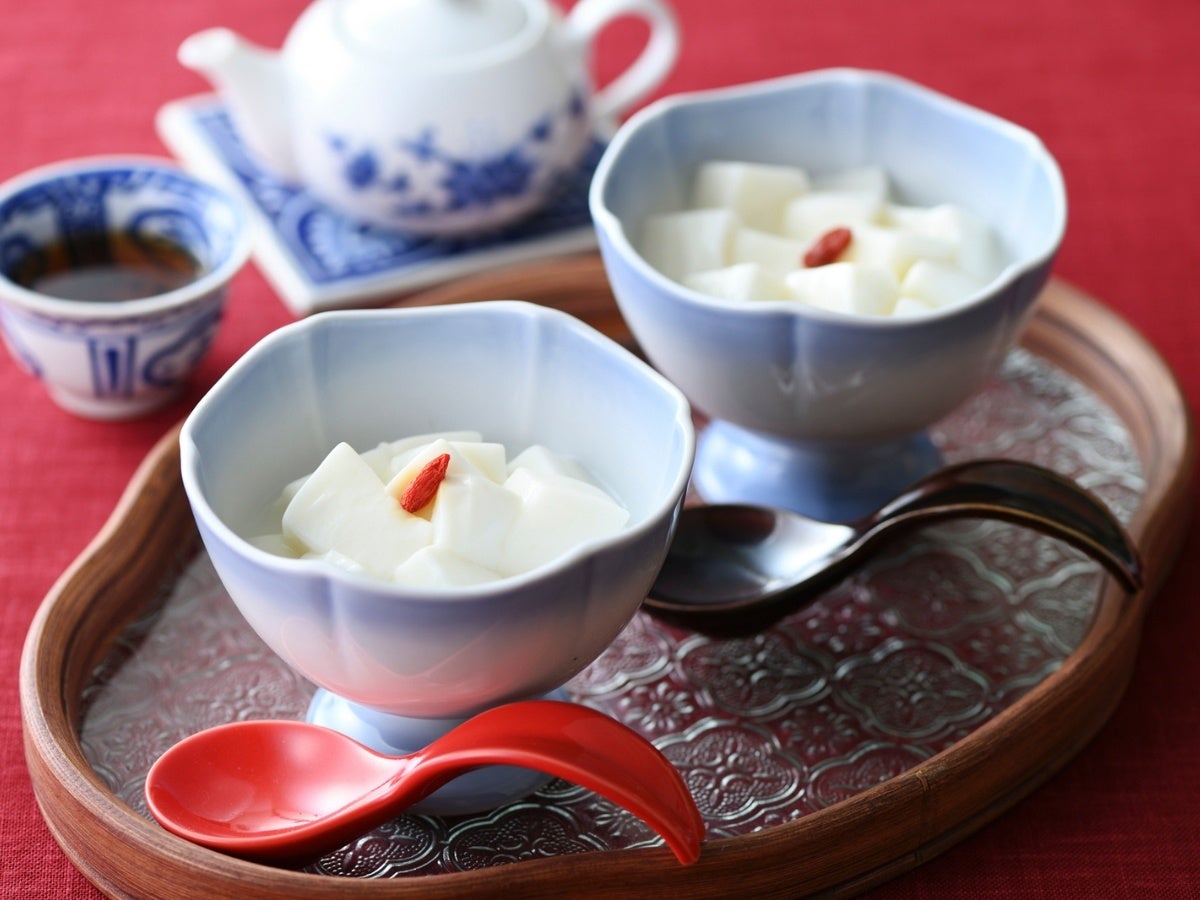 さっぱりとした甘さ控えめの杏仁風ゼリーで食後にリフレッシュ。