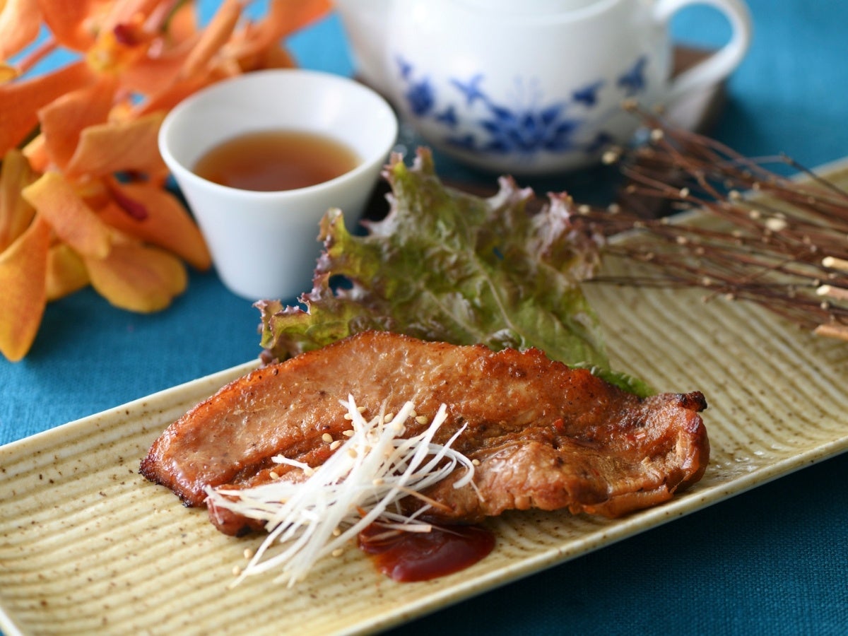 スパイスの香りがたまらない、野菜と一緒に楽しむポークグリル。