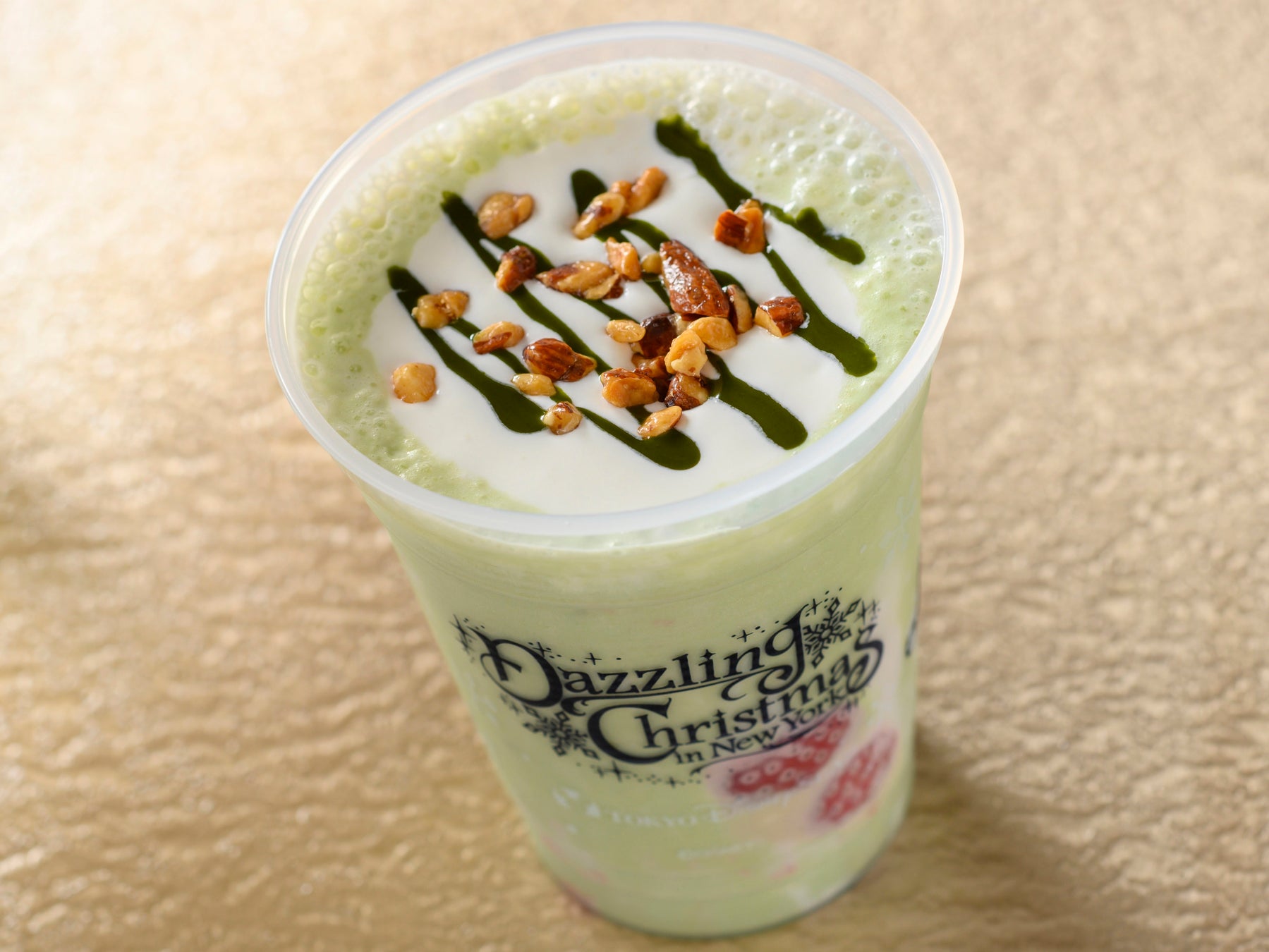 東京ディズニーシーのアメリカンウォーターフロントのニューヨークエリアを中心に開催している「ダズリング・クリスマス・イン・ニューヨーク」では、この期間限定のカップに入った3種類のドリンクが登場します。「ドックサイドダイナー」では、クリスマスのきらびやかな風景をイメージしたザクロやイチゴの甘酸っぱさを楽しめるスパークリングゼリードリンク(グレナデン・シロップ&ストロベリー)を販売します。「ハドソンリバー・ハーベスト」では、キャラメルとホイップの甘味を存分に楽しめる、寒い冬にホッと温まるホイップキャラメルミルクティーが登場します。「フードトラック(レッド)」では、クリスマスカラーのデザートのようなスペシャルドリンク(ピスタチオ、パンナコッタ、アーモンドミルク)を販売します。とっておきのドリンクで、ニューヨークエリアでの景色も心もきらめくクリスマスをお楽しみください。