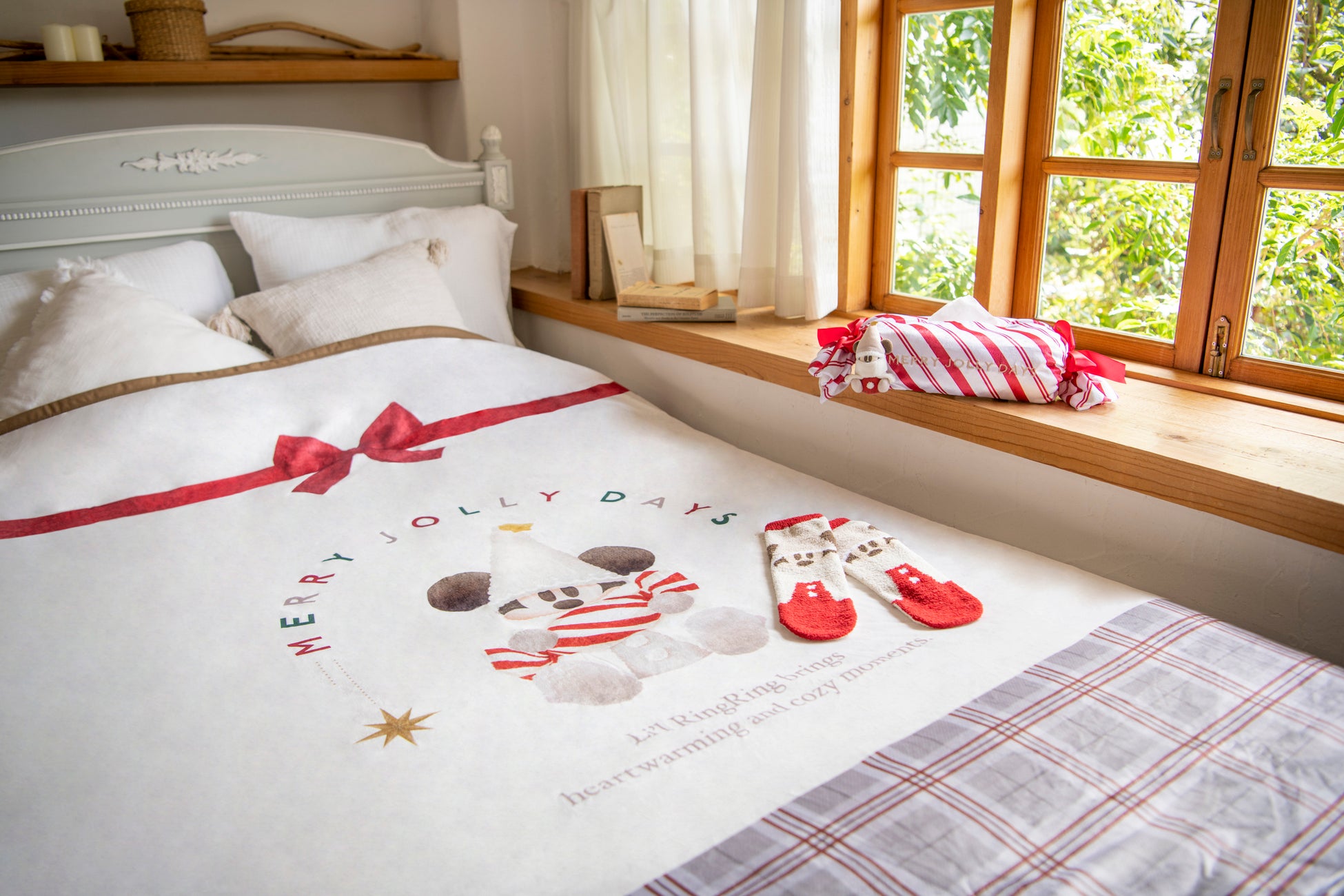 装い新たに優しい色合いの衣装に身を包んだクリスマスの妖精“リルリンリン”のグッズが登場します。“リルリンリン”が描かれたマフラーやミトンは、もこもことした肌触りが特徴的で、身に着ければ温かい気持ちで過ごせます。また、クリスマスのキャンディのようなデザインのティッシュボックスカバーや、真ん中に大きく“リルリンリン”が描かれた毛布、赤と白のクリスマスらしいデザインのマグカップなど、おうちで使えるグッズも販売します。