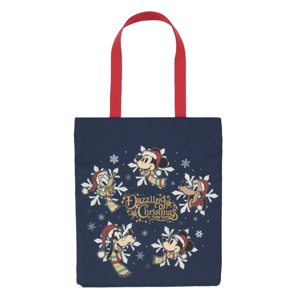 東京ディズニーシーのアメリカンウォーターフロントで開催される「ダズリング・クリスマス・イン・ニューヨーク」のグッズとして、ニューヨークのクリスマスを楽しむミッキーマウスと仲間たちが描かれたトートバッグやミニタオルなどを販売します。また、組み合わせることでオリジナルのオーナメントを作ることができるぬいぐるみチャームとポーチは、クリスマスツリーに飾ったり、バッグにつけたりしてお楽しみいただけます。