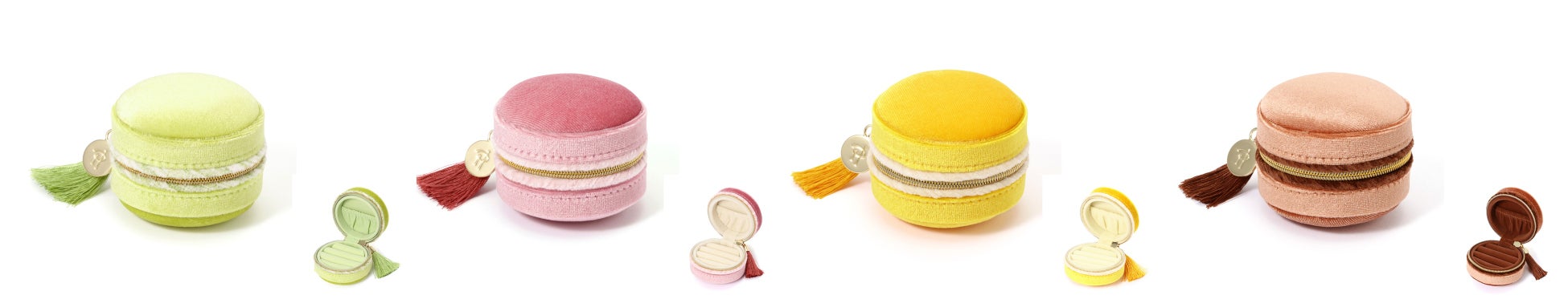 ピエール・エルメ・パリを代表するマカロンをデザインに落とし込んだミニ ジュエリーボックスです。リング、ピアス、ネックレスやブレスレットを収納できます。内側生地はマカロンのクリームのカラーを表現しています。ジッパー部分にはオリジナルのロゴチャームとタッセル付きです。持ち運びしやすいミニサイズなのでホリデーシーズンのおでかけにぴったりなアイテムです。