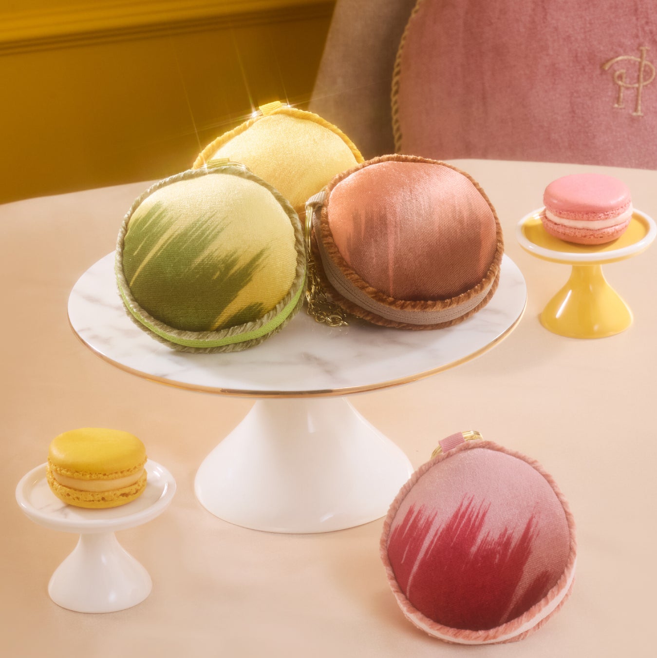 ピエール・エルメ・パリを代表するマカロンをデザインに落とし込んだバッグチャームエコバッグです。実際のマカロンのカラーを再現し、ファスナーはクリームの色を表現しています。ホリデーシーズンのおでかけにバッグチャームとしてはもちろん、ミニポーチとしてもお使いいただけます。中にセットされているエコバッグは光沢のある華やかな素材です。