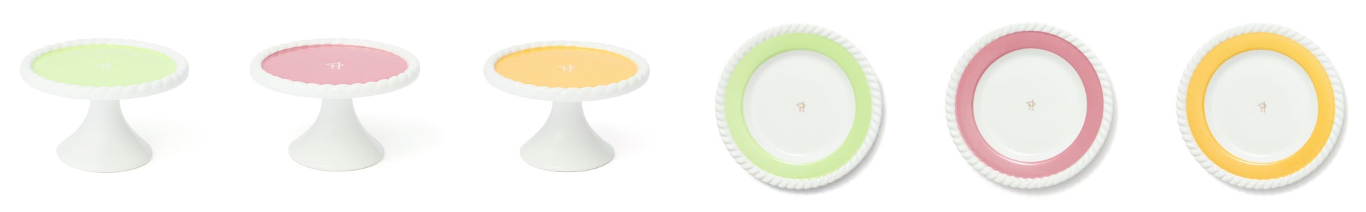 ピエール・エルメ・パリを代表するマカロンのカラーをデザインに落とし込んだケーキスタンドとプレートです。ケーキスタンドは人気のスイーツ「イスパハン」がぴったりのるサイズ感です。どちらもマカロンやスイーツと合わせることで、かわいらしいテーブルコーディネートが楽しめます。クリームのようなポコポコしたリムがポイントです。