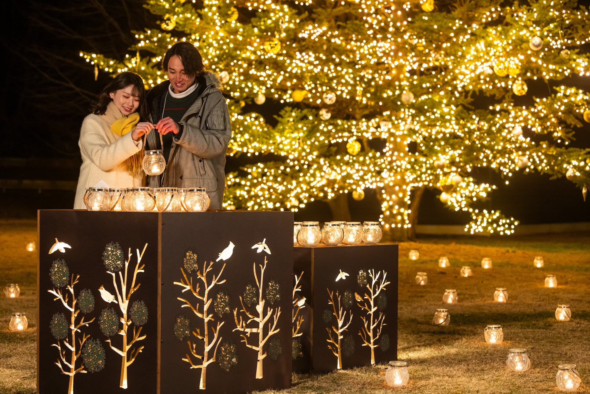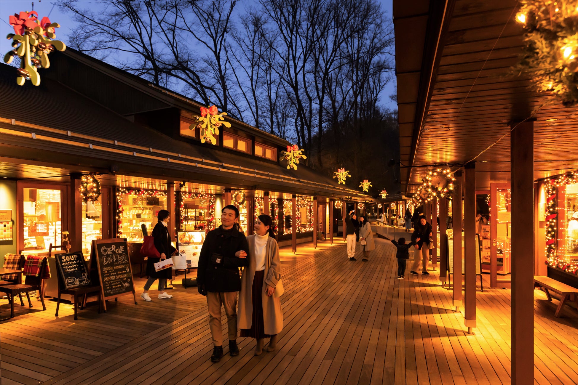 「軽井沢星野エリア」では、2024年12月1日〜25日にイルミネーション装飾を施します。幸せの象徴「やどりぎ」の飾りが施された小さな街「ハルニレテラス」と、シンボルツリーがある「もみの木広場」が遊歩道で繋がれています。やどりぎの実に見立てた「やどりぎランタン」(*)を各所に設置します。ランタンを持ってエリア内の散策を楽しむことができます。