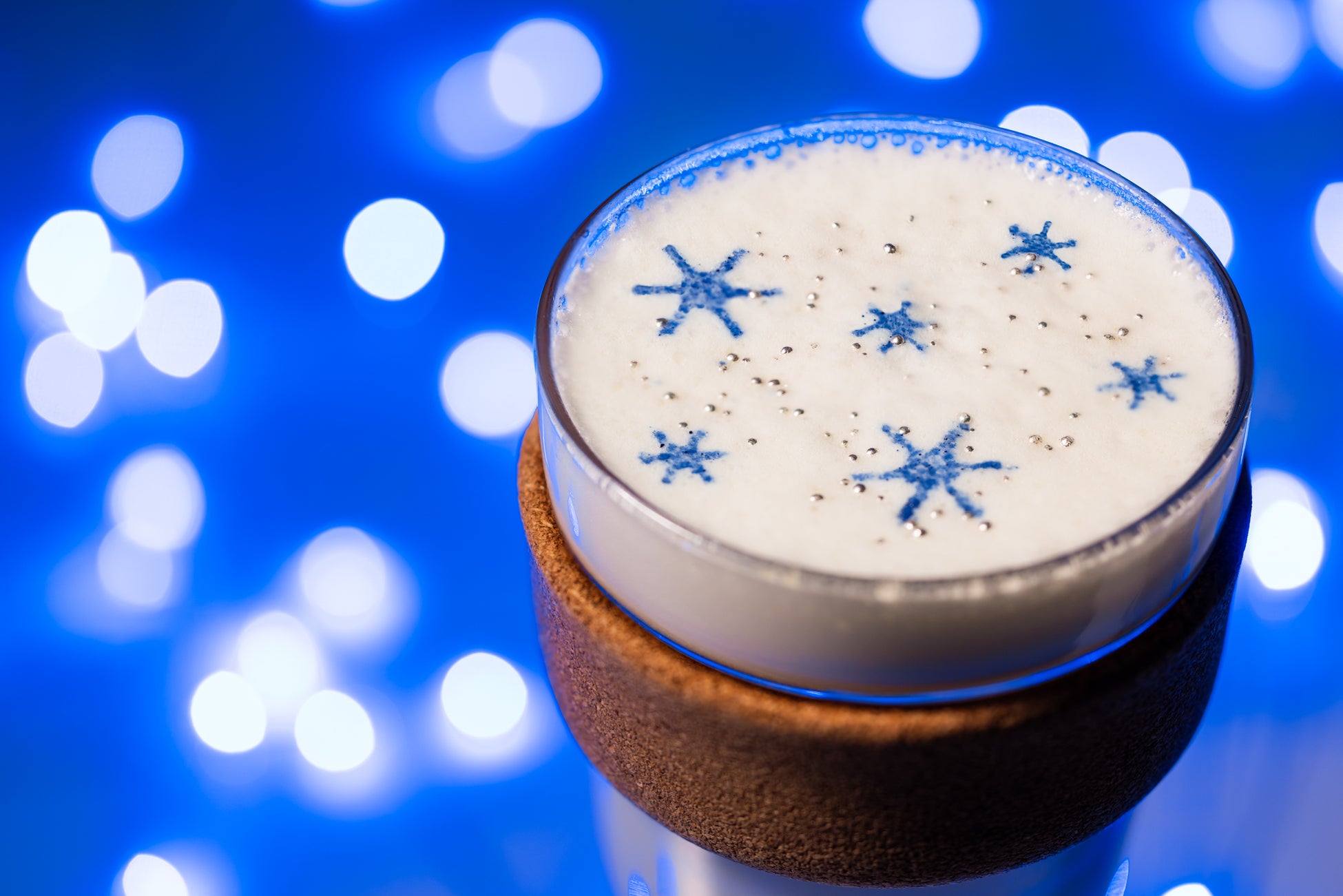 隣接するカフェでは、冬限定のホワイトココアを販売します。冬の星空をイメージしたラテアートを施し、アラザンをちりばめ、キラキラと輝く星を表現しました。一般的なリンクでは氷上での飲食は禁止されていますが、本リンクでは、森に囲まれた空間をより楽しめるよう、氷上のベンチでドリンクを味わうことができます。