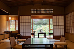 客室は、水辺に浮かぶように佇む「水波(みずなみ)の部屋」、戸建て感覚でプライベート感の高い「山路地(やまろじ)の部屋」、庭を望むテラスが心地よい「庭路地(にわろじ)の部屋」の3タイプ。いずれも日本の伝統的な建築様式を取り入れながら、現代の快適さを追求した設えです。窓の外に広がるのは、人の手が加えられていないありのままの自然。鳥の声や川のせせらぎが、日常の喧騒を忘れさせてくれます。