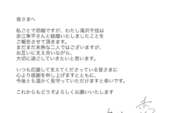【吉報】女優・滝沢千佳が結婚を発表!誠実さ伝わるメッセージに「どうか末永くお幸せに」とファン感動