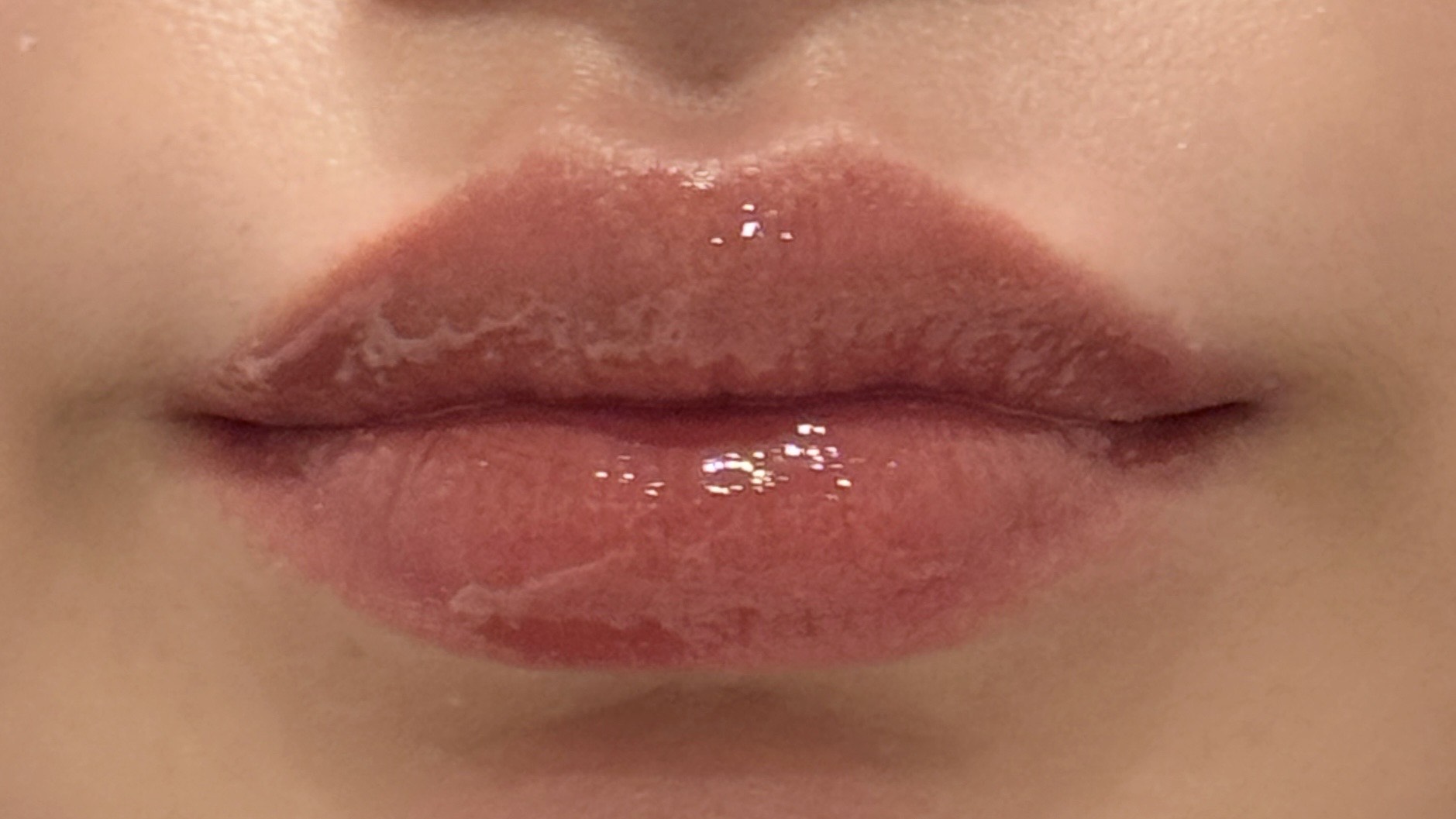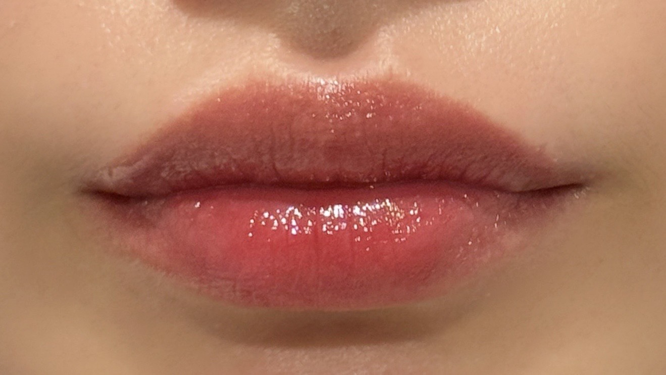 透け感のあるツヤが唇を自然にふっくら見せてくれ、縦ジワも目立ちにくいんです。