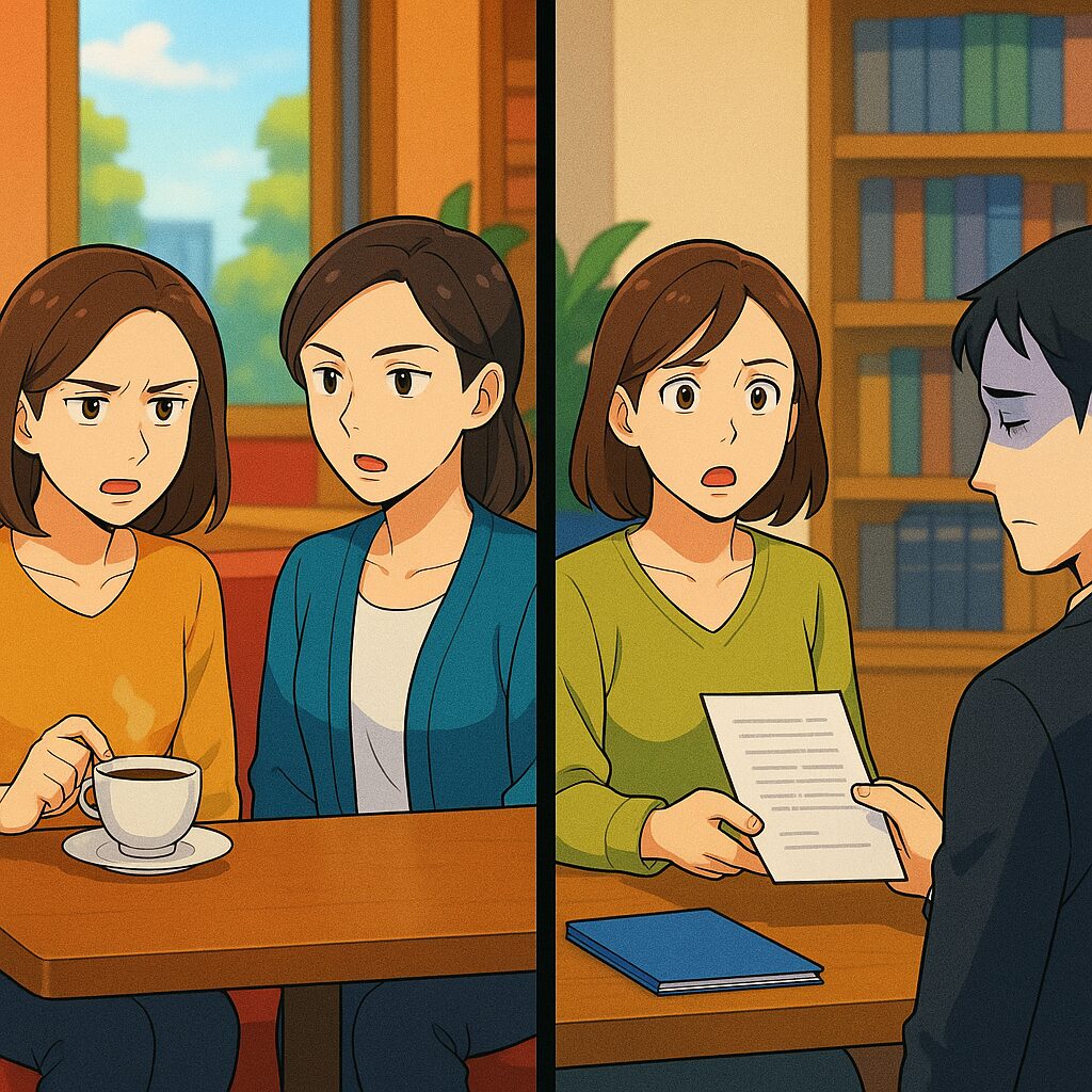 震える手でコーヒーカップを持ち上げながら、私はどんな言葉で彼女を責めようかと考えていました。ところが、先に口を開いたのは彼女の方でした。