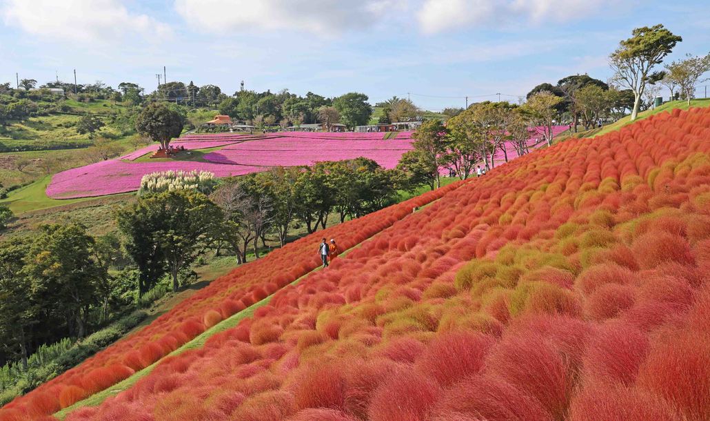 秋の茨城を代表する絶景といえば、国営ひたち海浜公園の「みはらしの丘」を埋め尽くすコキア