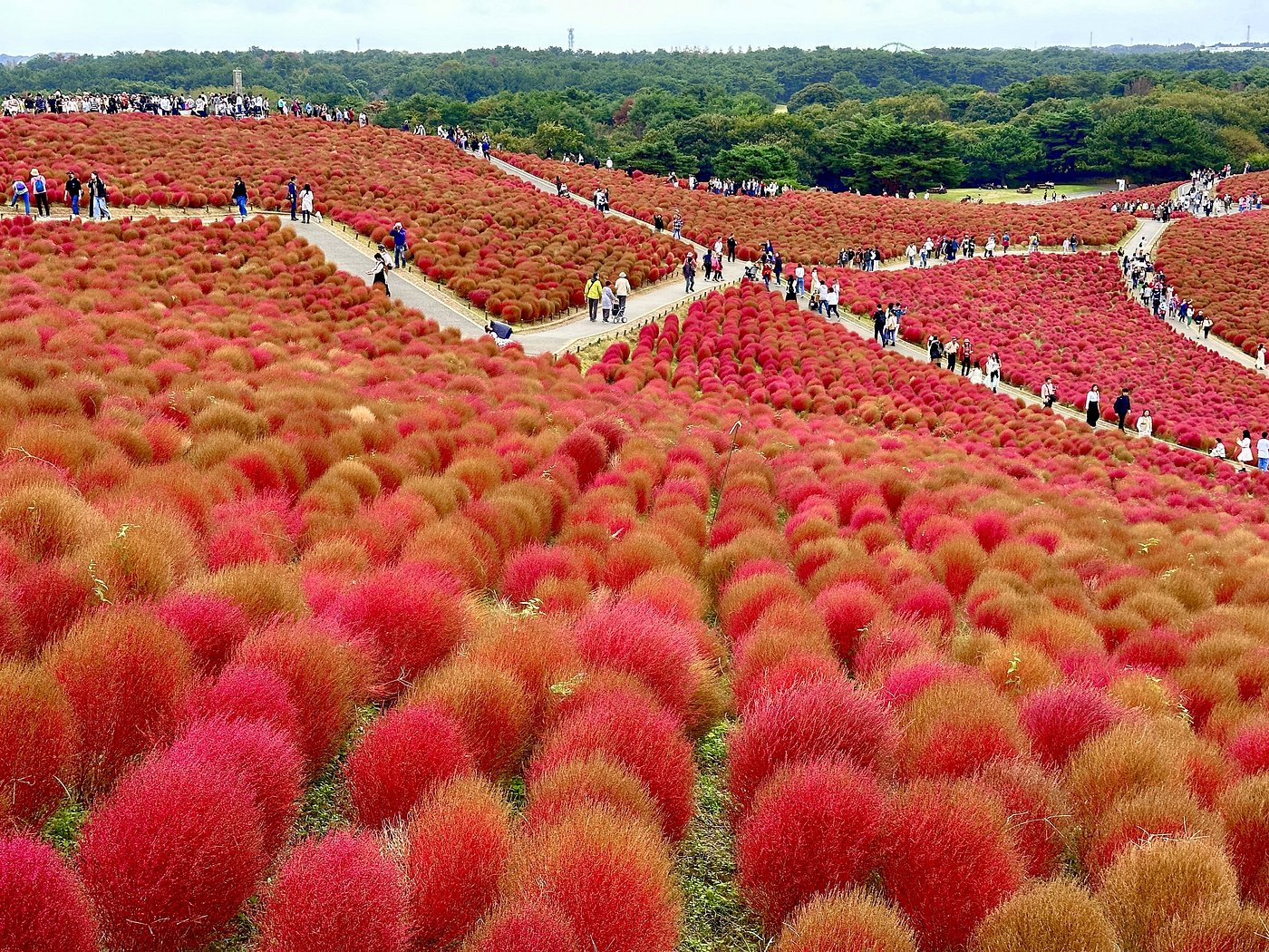 国営ひたち海浜公園|真っ赤に染まるコキアの丘は圧巻の一言!