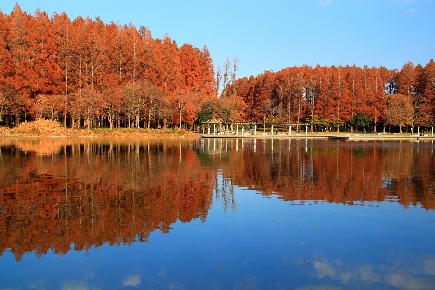 水郷の景観をもつ水元公園。秋が深まる11月下旬から12月上旬にかけて、園内にある「メタセコイアの森」は黄金色に輝き、まるで絵画のような美しい世界が広がります。