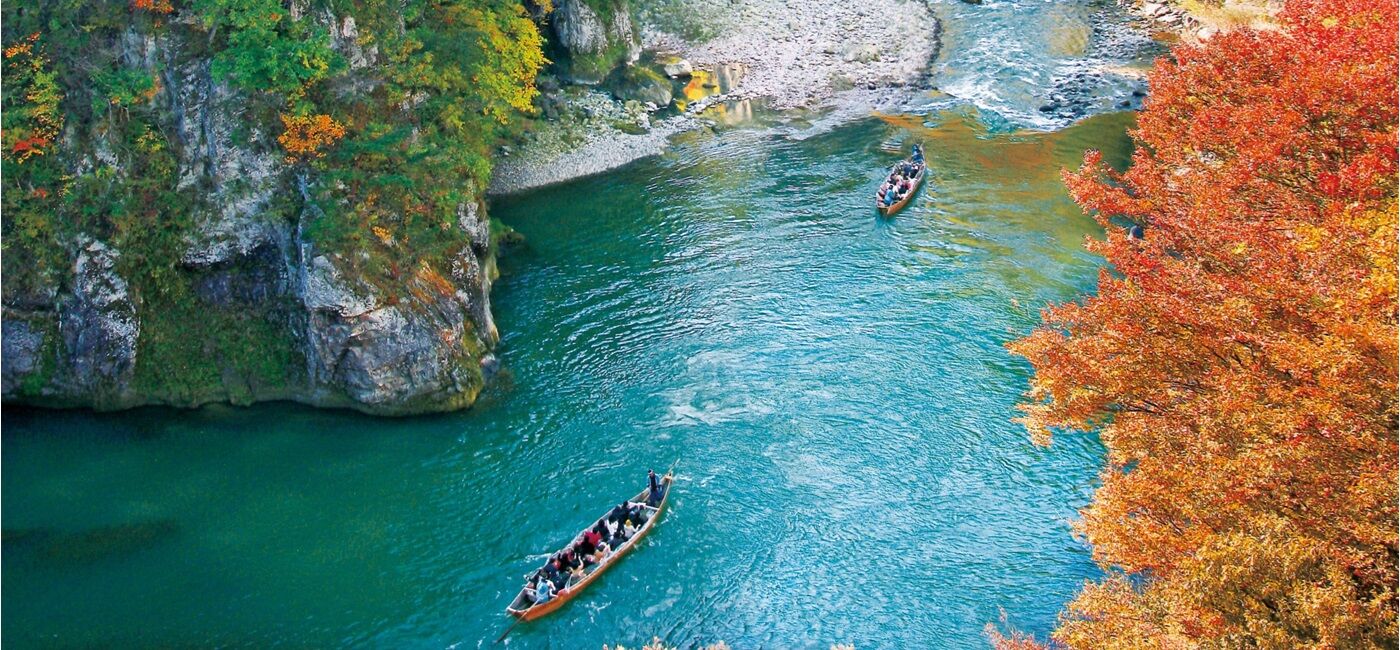 水面からの見上げる紅葉は、普段とは違った迫力と美しさ。スリルと絶景を一度に味わえる特別な体験です。