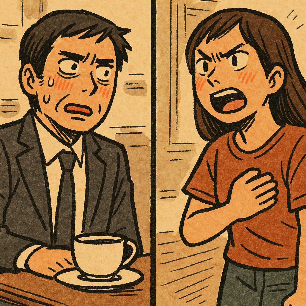 やがて、空になったカップをテーブルに叩きつけるように置くと、彼は周りに聞こえるような声でこう言い放ったのです。