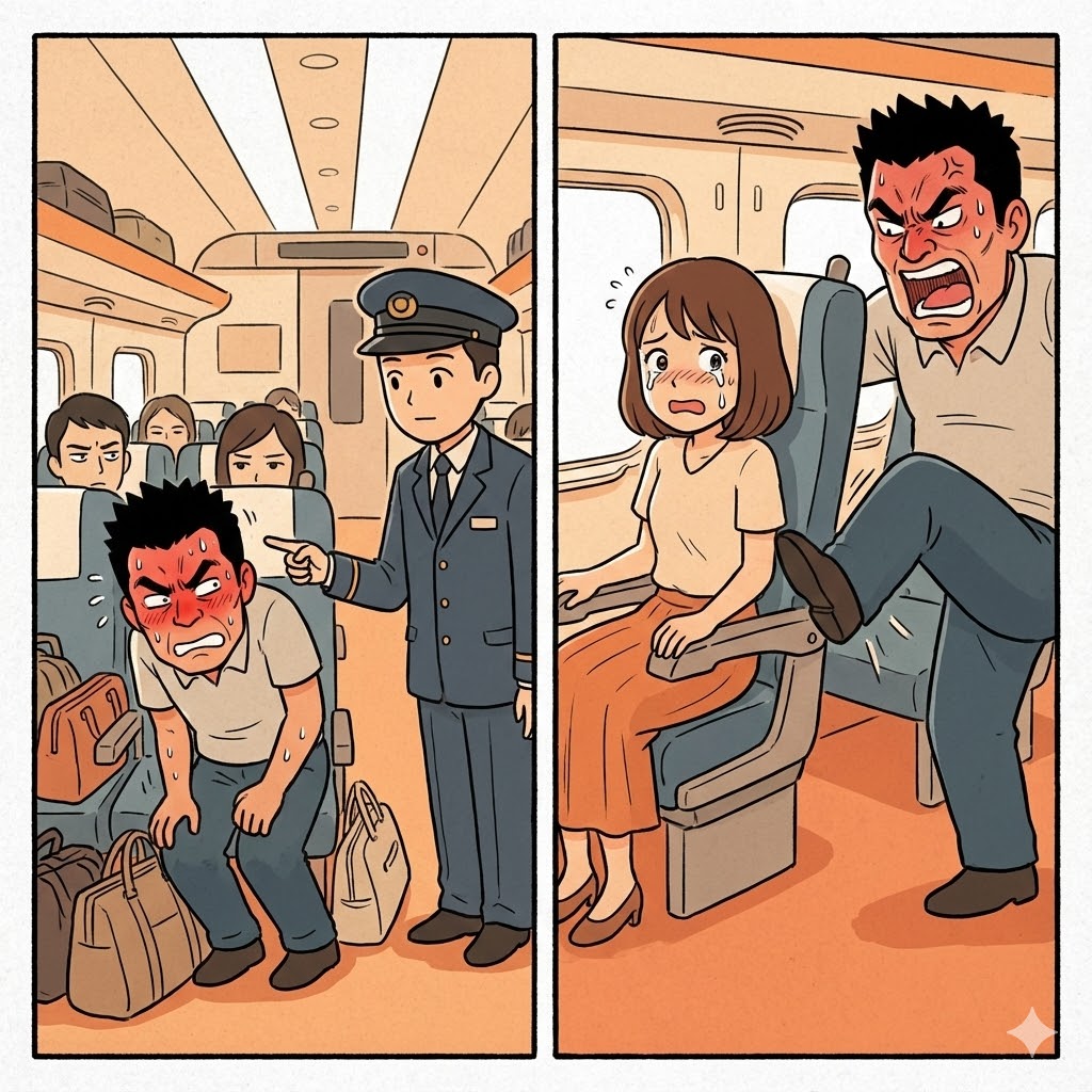 新幹線で「席を倒すな!」と後ろから蹴る男。だが、乗務員のある一言で、男が赤面した理由【短編小説】