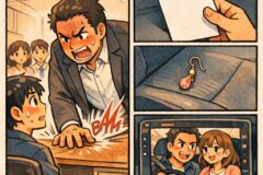 顔を上げると、そこには厳しい指導で知られる部長が立っていました。