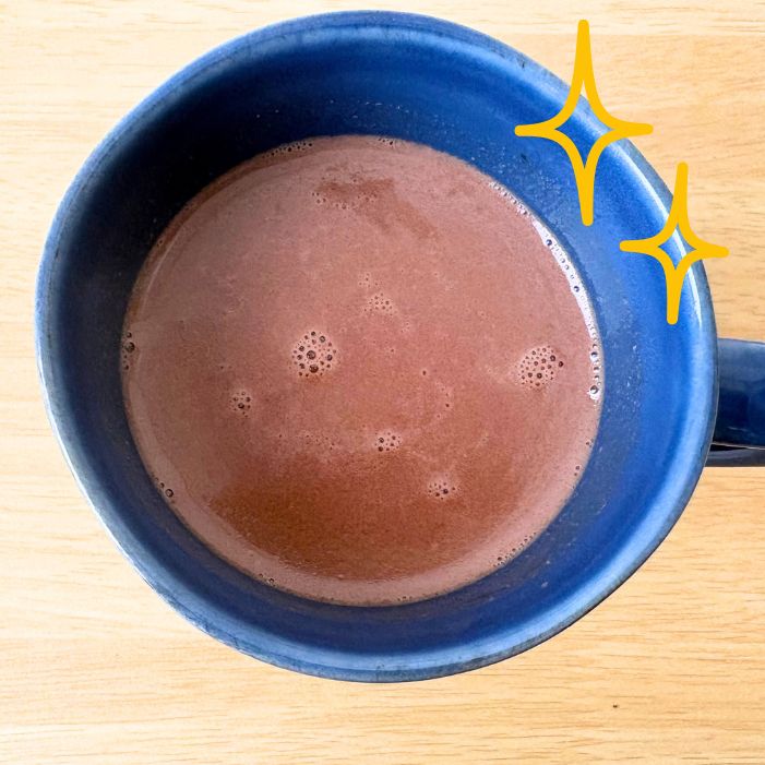 ちなみに、沸騰した牛乳をカップに注いでからチョコを入れて混ぜる方法も試しましたが、なかなか溶けませんでした。